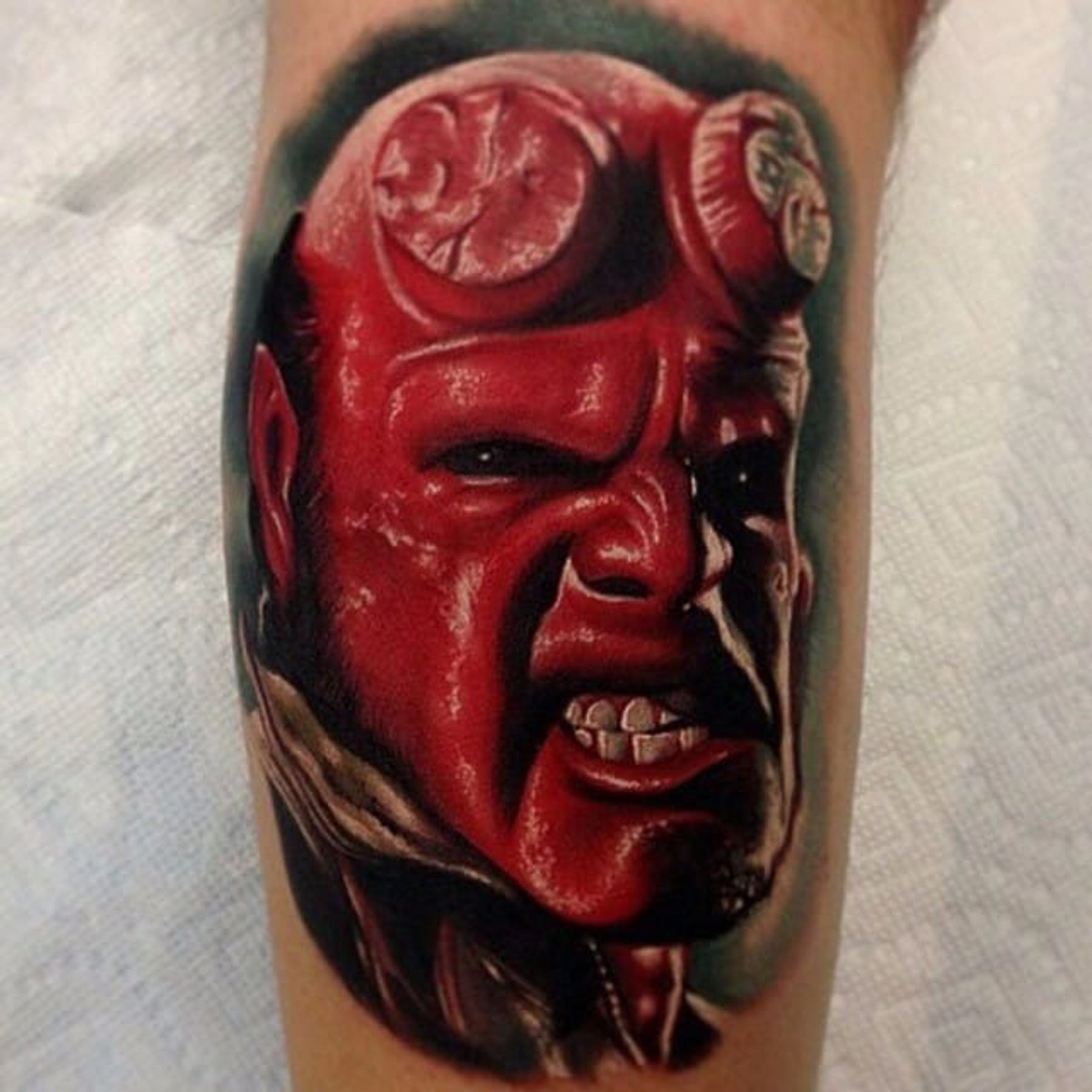 Hellboy tattoo by Audie Fulfer Jr. #Hellboy #darkhorse #comics #graphicnovel #character #colorrealism