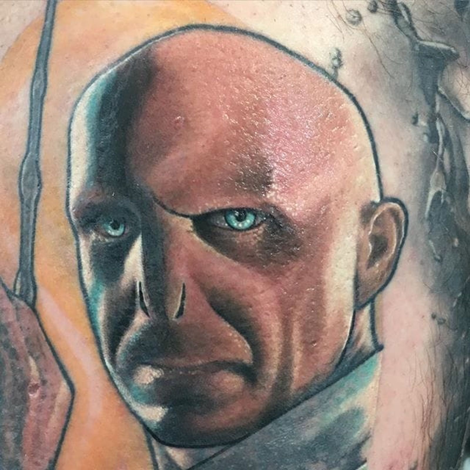 Voldemort Tattoo by Matt Youl #Voldemort #neotraditional #neotraditionalartist #nerdy #nerdtattoo #MattYoul