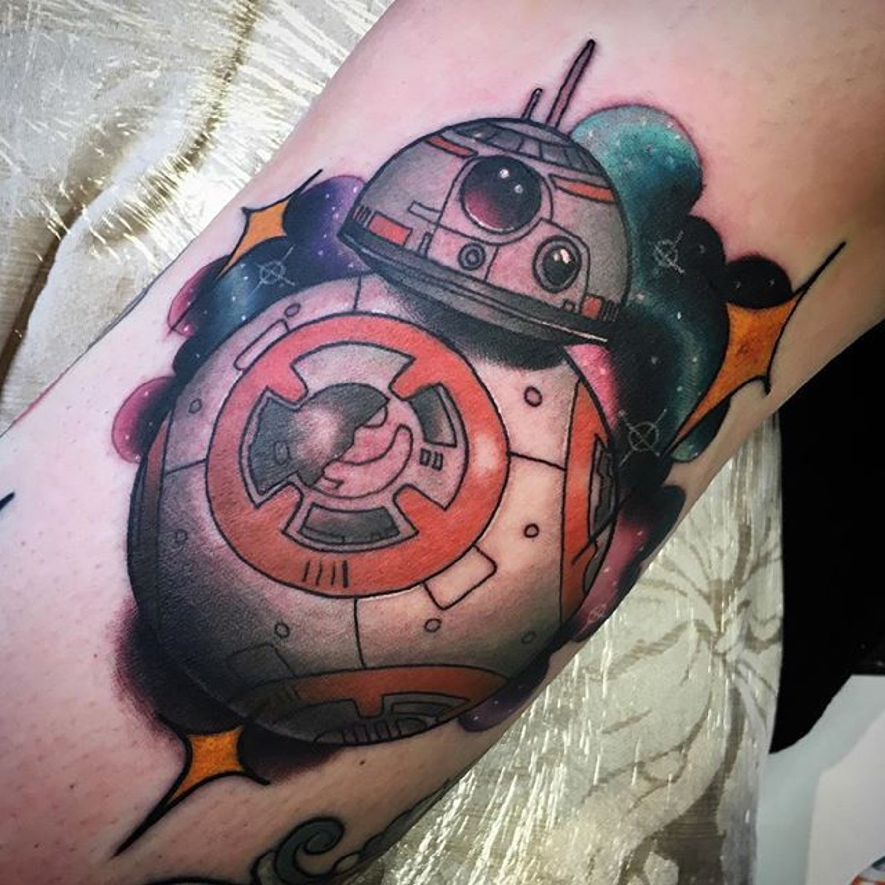 BB-8 Tattoo by Matt Youl #BB8 #neotraditional #neotraditionalartist #nerdy #nerdtattoo #MattYoul