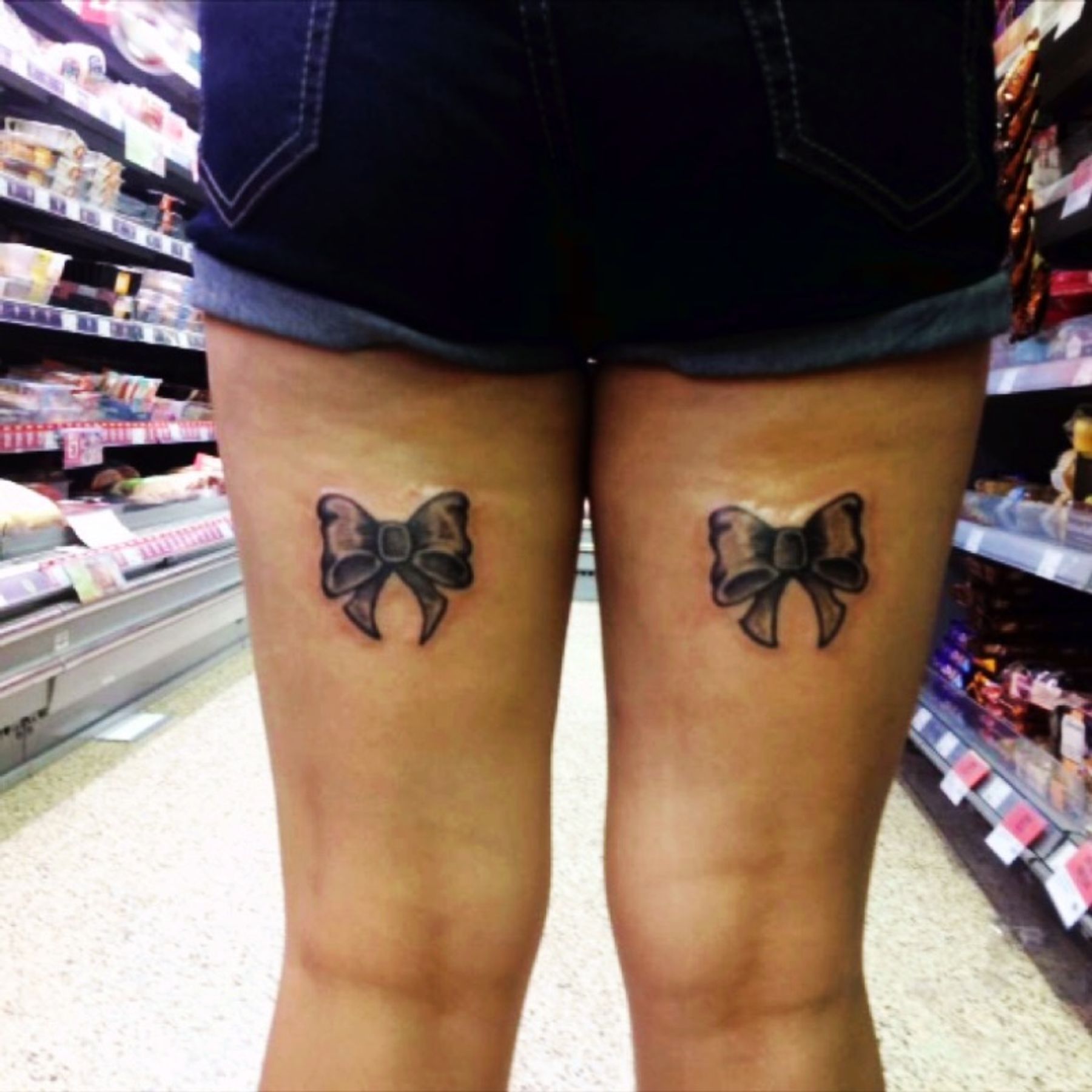 #bows #bowtattoo #blackandgreytattoo #backoflegs