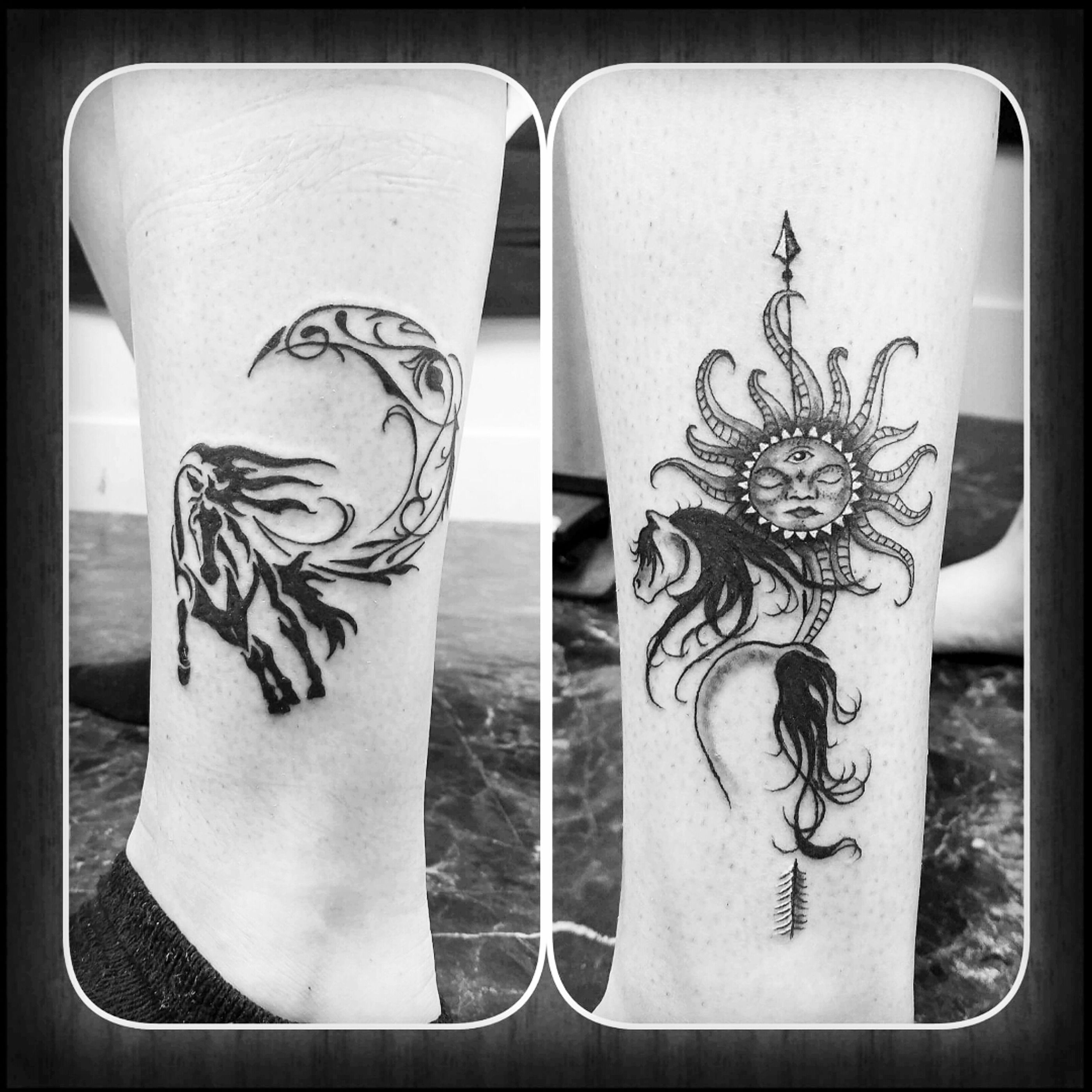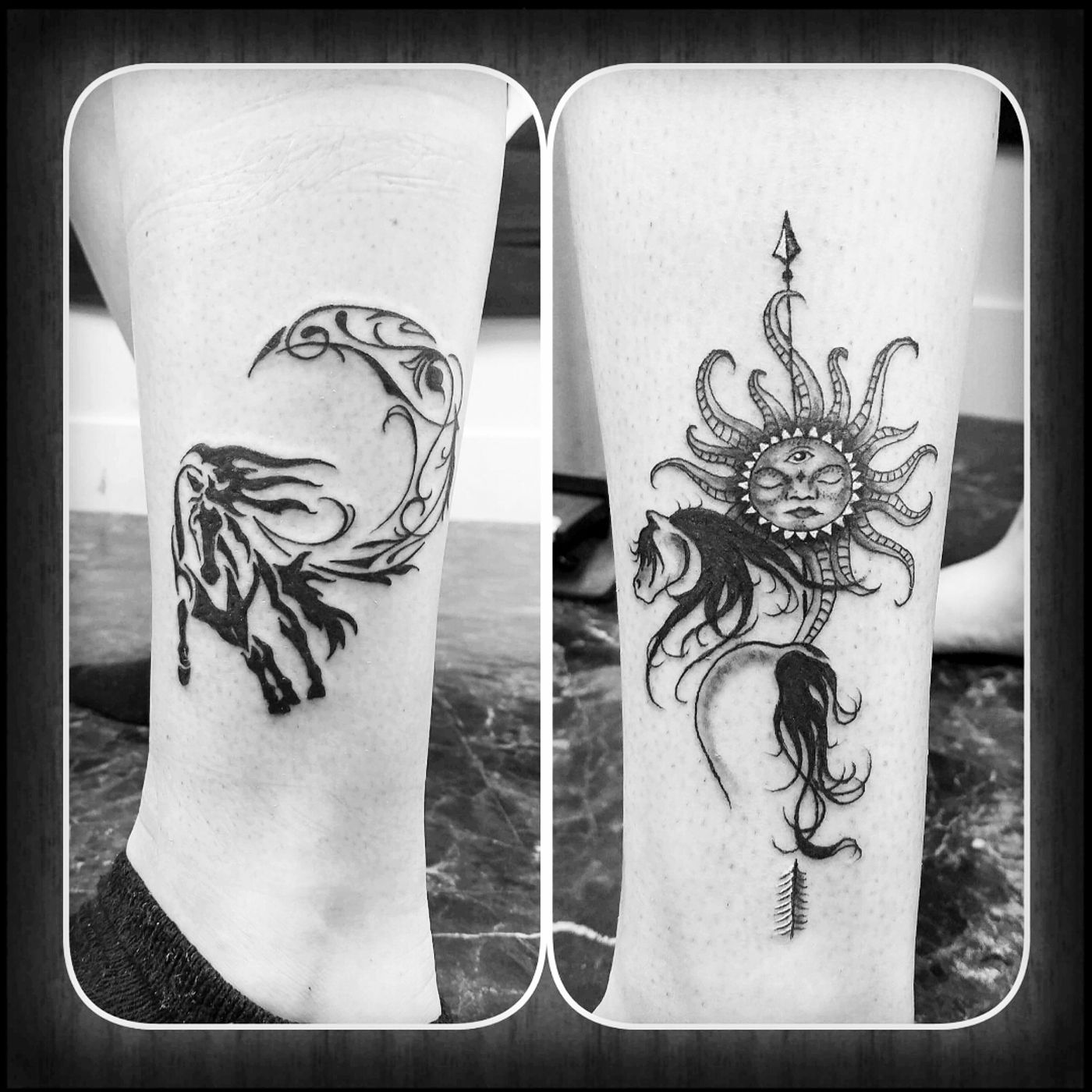 A different twist on bestfriend tattoos its always been us and the horses!:) #bestfriend #horse #different #creative #sunandmoon