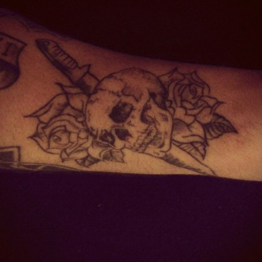 Skull and dagger, helping the process on my sleeve #skull #dagger #roses #finelines #copenhagen