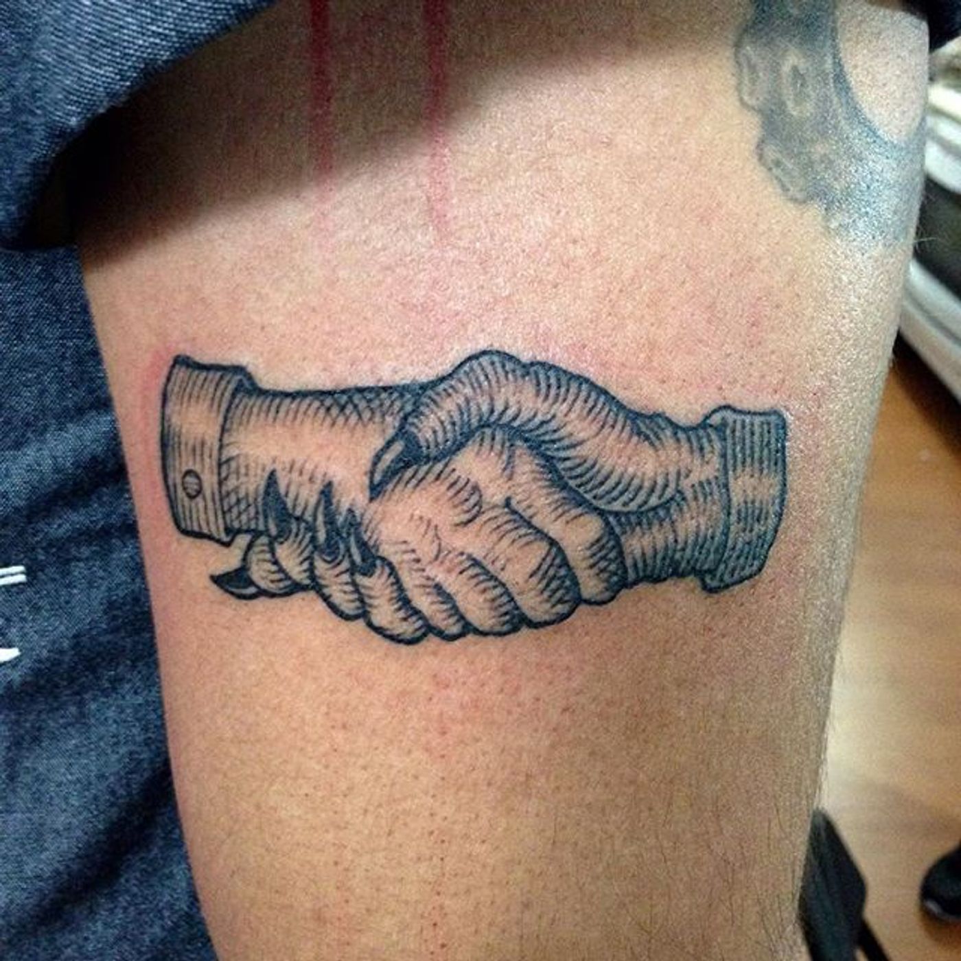 Devils Handshake Tattoo by Miguel Angel Viessa #devilshandshake #handshaketattoo #deviltattoo #traditional #MiguelAngelViessa