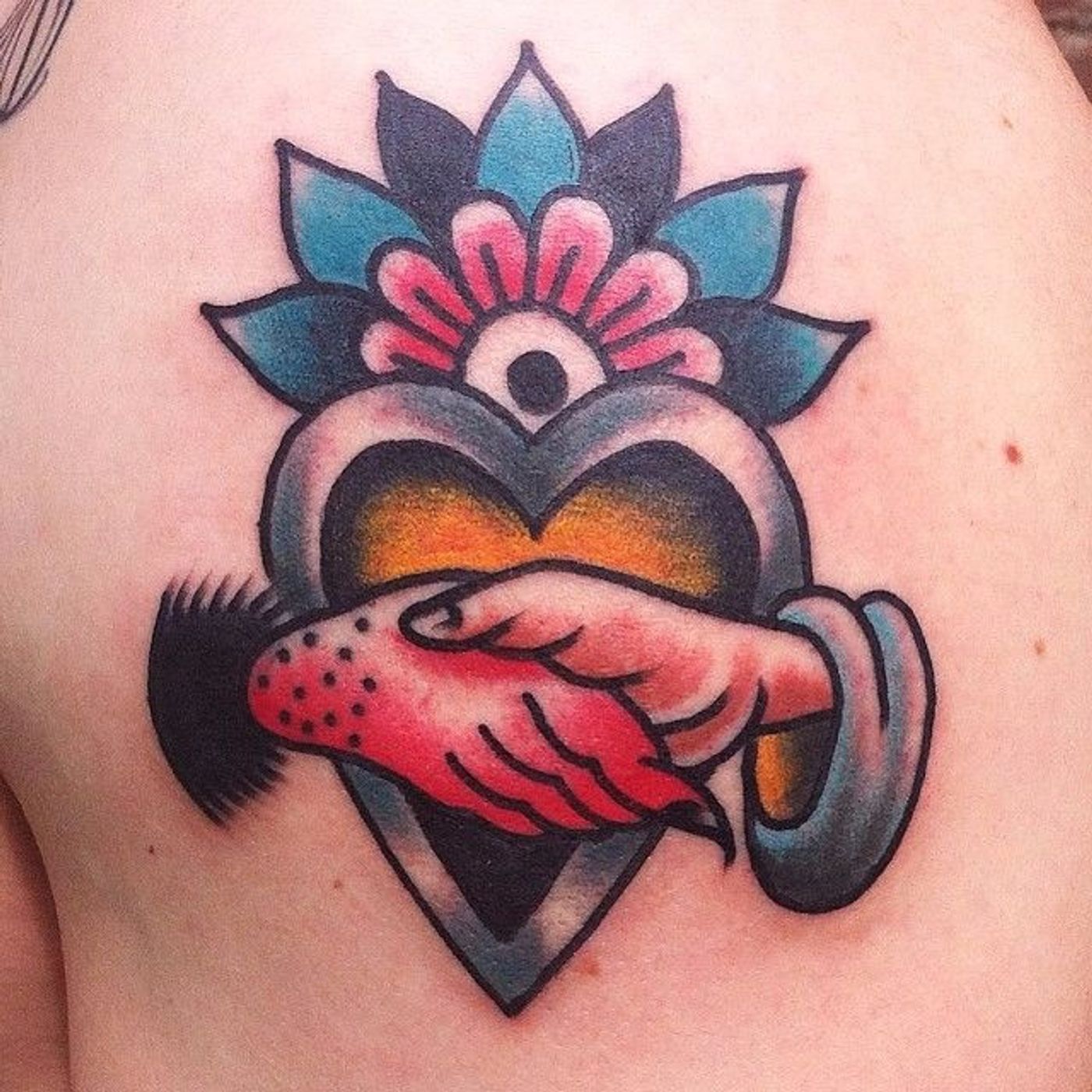 Devil Handshake Tattoo by @yobbopdc #devilshandshake #handshaketattoo #deviltattoo #traditional