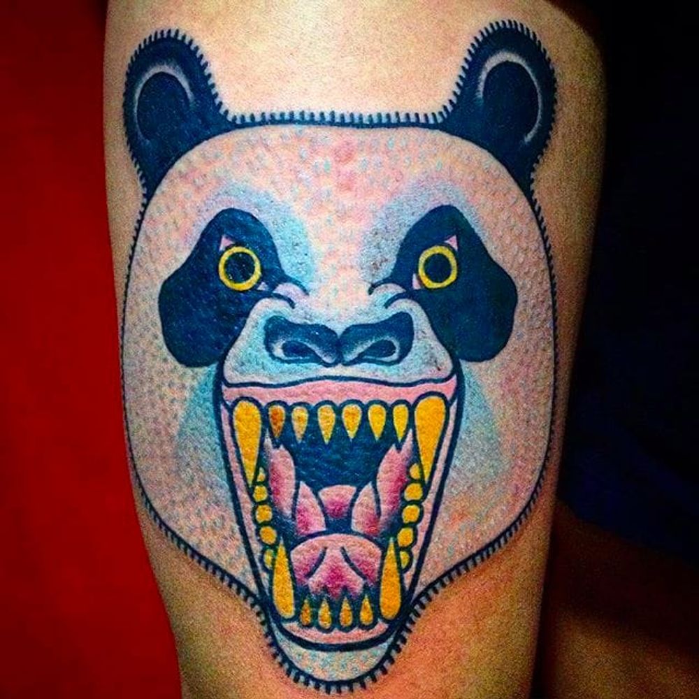 Growling Panda Tattoo by @Elmongasasturain #Elmongasasturain #Traditional #Neotraditional #Alohatattoos #Barcelona #Spain #Panda