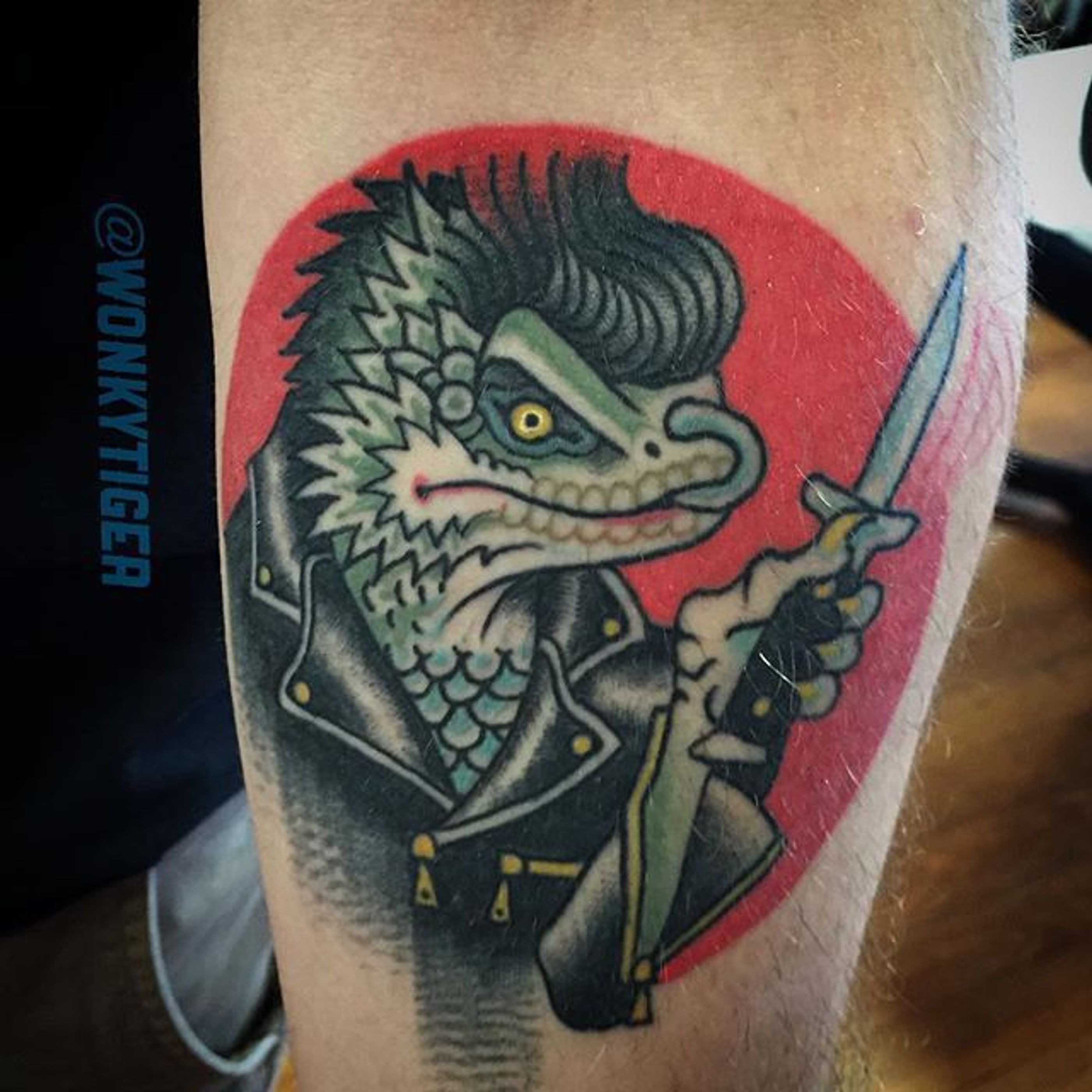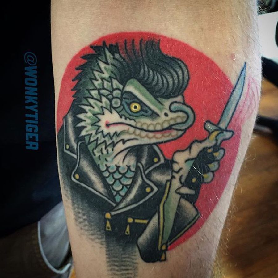 Lizard Tattoo by Ian Bederman #animaltattoo #traditionalanimal #traditional #quirkytattoos #IanBederman #lizard
