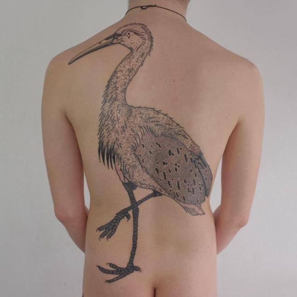 Stork tattoo by Victor Zabuga #VictorZabuga #minimalistic #blackwork #conceptual #stork #bird