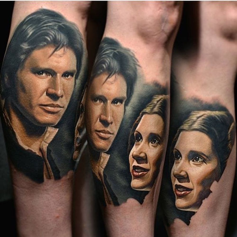 Han Solo and Leia Tattoo by Nikko Hurtado #hansolo #princessleia #hansoloandleia #leia #starwars #couples #couple #NikkoHurtado
