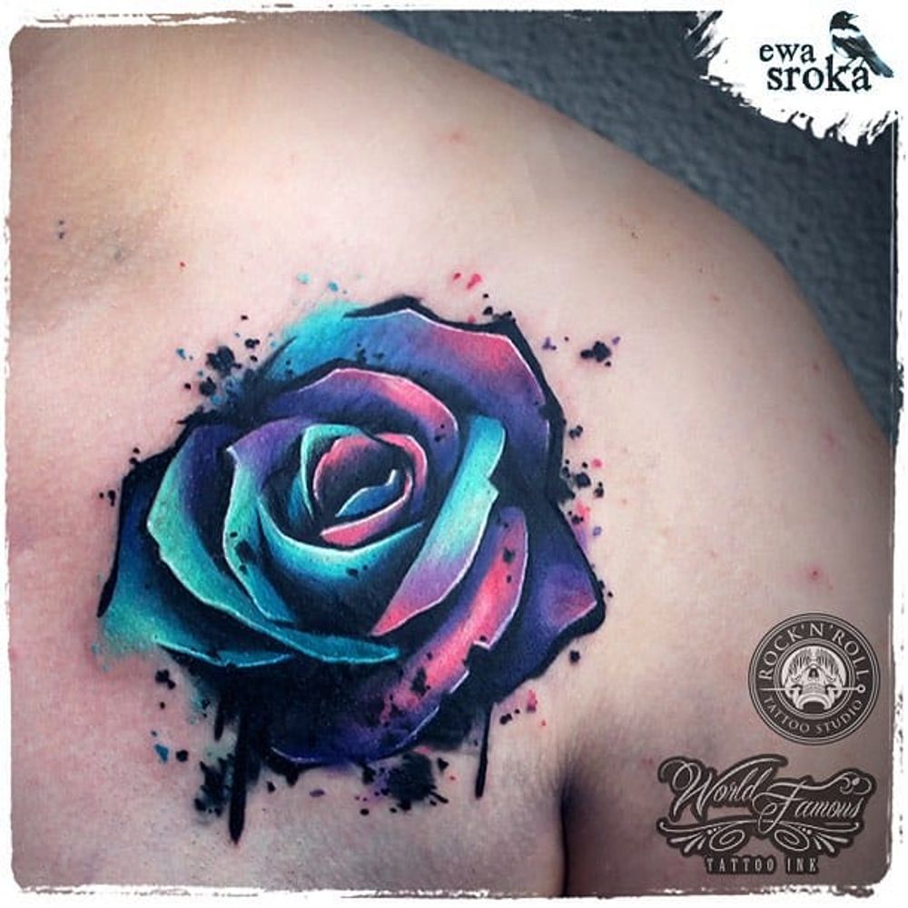 Candy-looking Rose Watercolor Tattoo via @EwaSrokaTattoo #EwaSrokaTattoo #Rainbow #Bright #WatercolorTattoo #Rose #Poland #watercolor