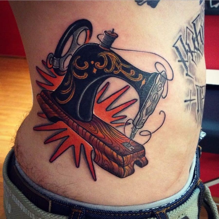 Sewing Machine Tattoo by @vtimv #sewingmachine #traditional #vintagetattoos #vintage #sewing