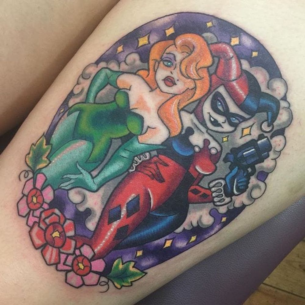 Poison Ivy and Harley Quinn Tattoo by Sarah K #poisonivy #posionivypinup #pinup #batman #dc #comics #comicbook #SarahK