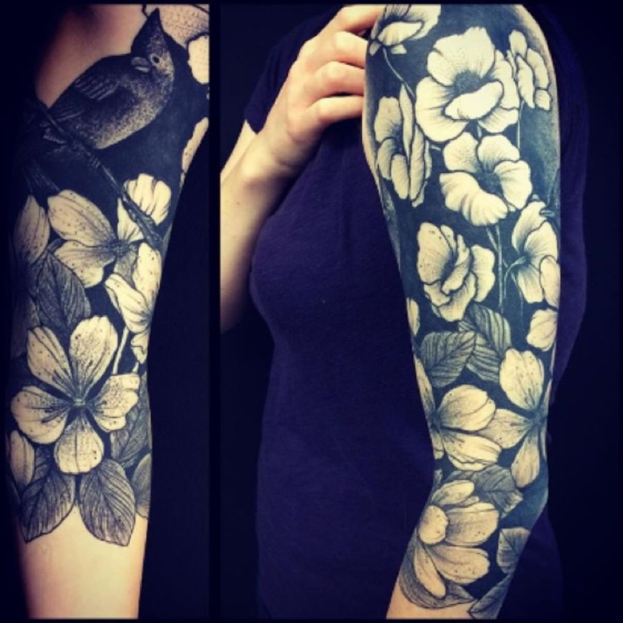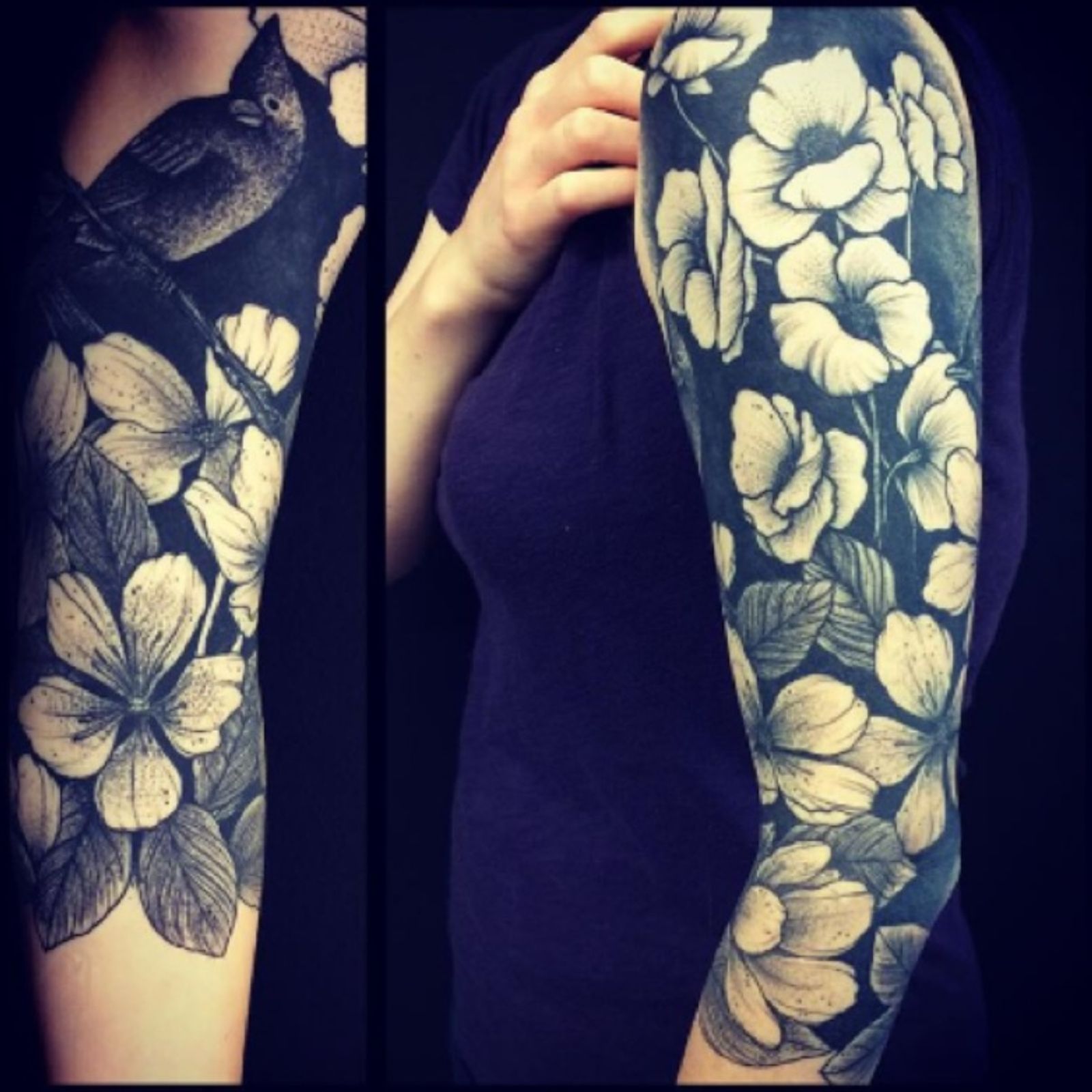 Floral blackwork sleeve by casper mugridge #blackwork #blackworkers #floral