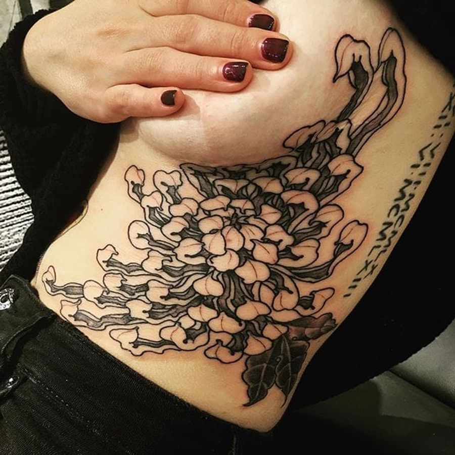 Peony Tattoo by Ganji #peony #japanesepeony #japanese #darkjapanese #blackwork #japaneseblackwork #threetides #Ganji #GanjiBang