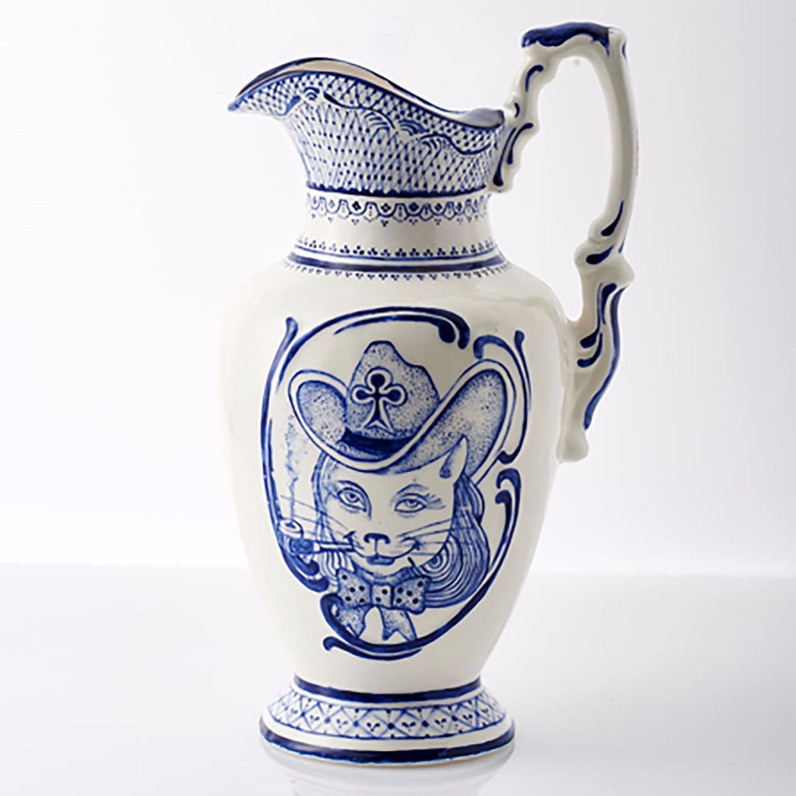 Original, single edition porcelain pitcher, based off of Russian Prison Tattoos, by Valeria Monis. #ValeriaMonis #RussianPrisonTattoo #PrisonTattoos #ArtShare #Porcelain #Artist