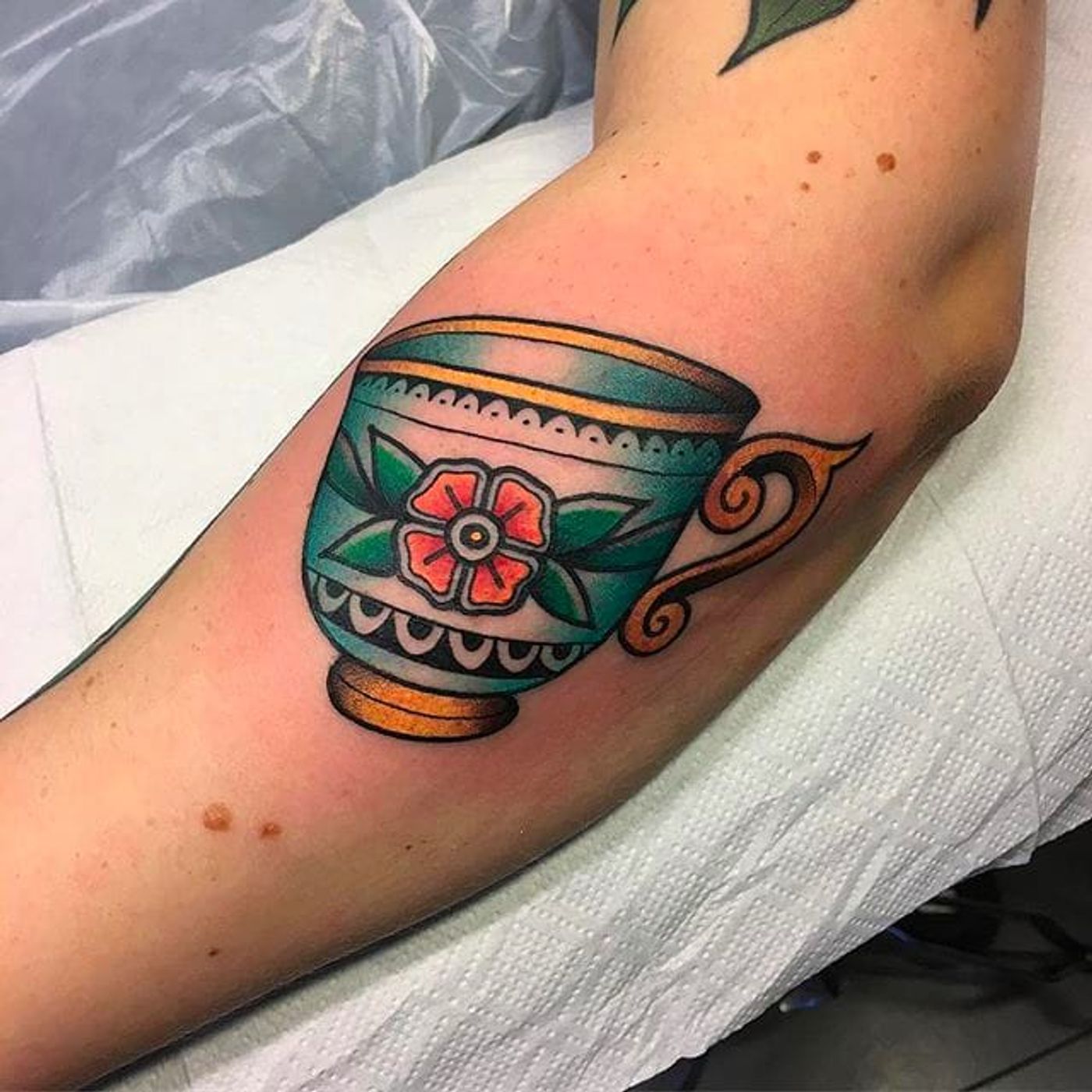 Cute and clean little teacup tattoo by Filip Henningsson. #FilipHenningsson #RedDragonTattoo #traditionaltattoo #boldtattoos #teacup