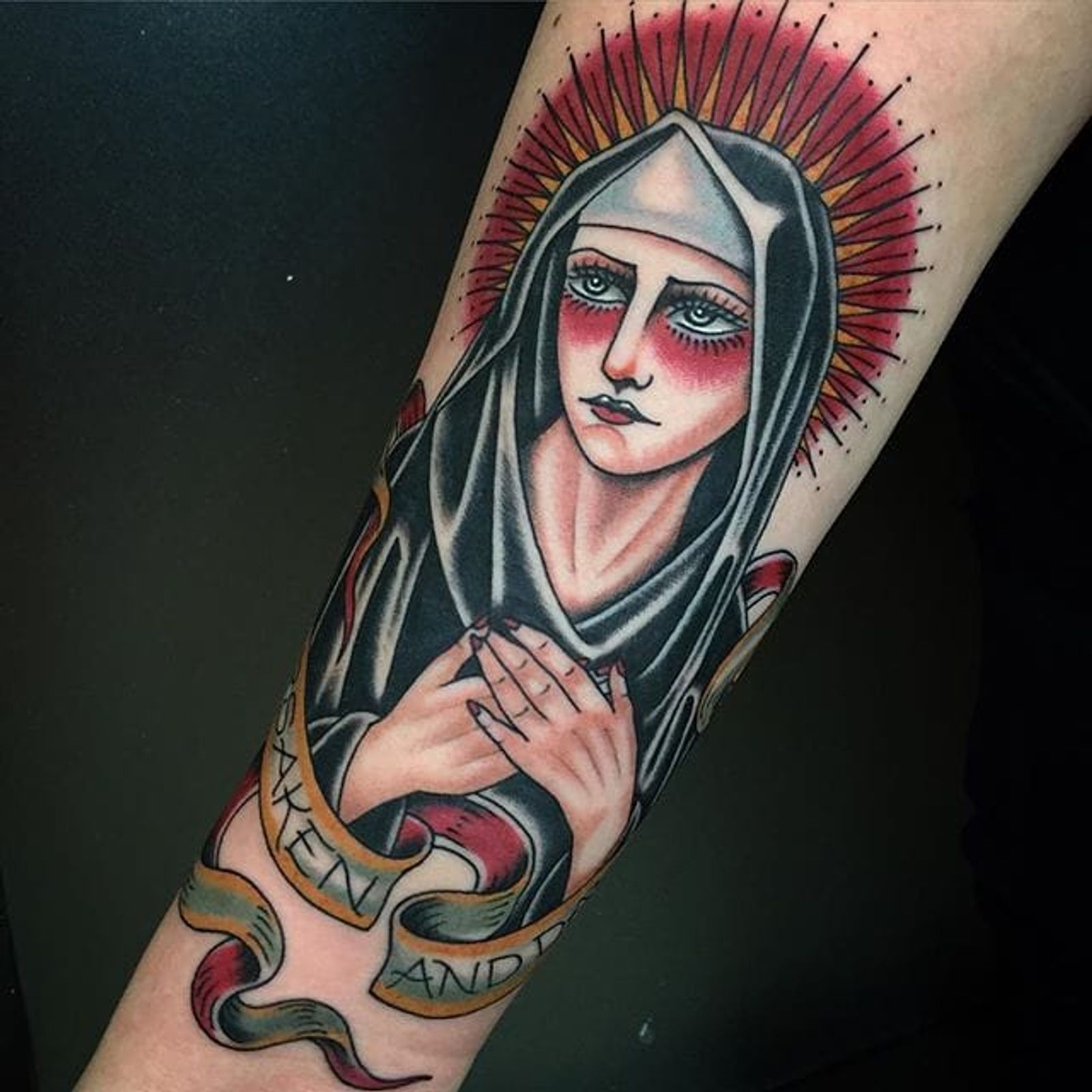 Nun Tattoo by Drake Sheehan #nun #traditional #traditionalartist #oldschool #boldwillhold #DrakeSheehan