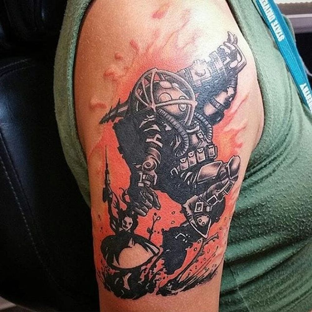 Big Daddy Tattoo by @the__mad__tattere #bigdaddy #littlesister #bioshock #bigdaddybioshock #gaming #gamingink