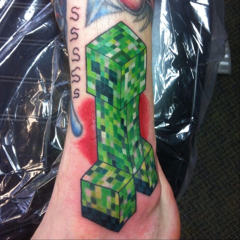 Minecraft Creeper tattoo by unknown artist #creeper #minecraft #minecrafttattoo #gamertattoo