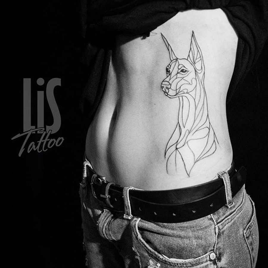 Line work doberman tattoo by @tattoolis. #linework #blackwork #dog #doberman #tattoolis