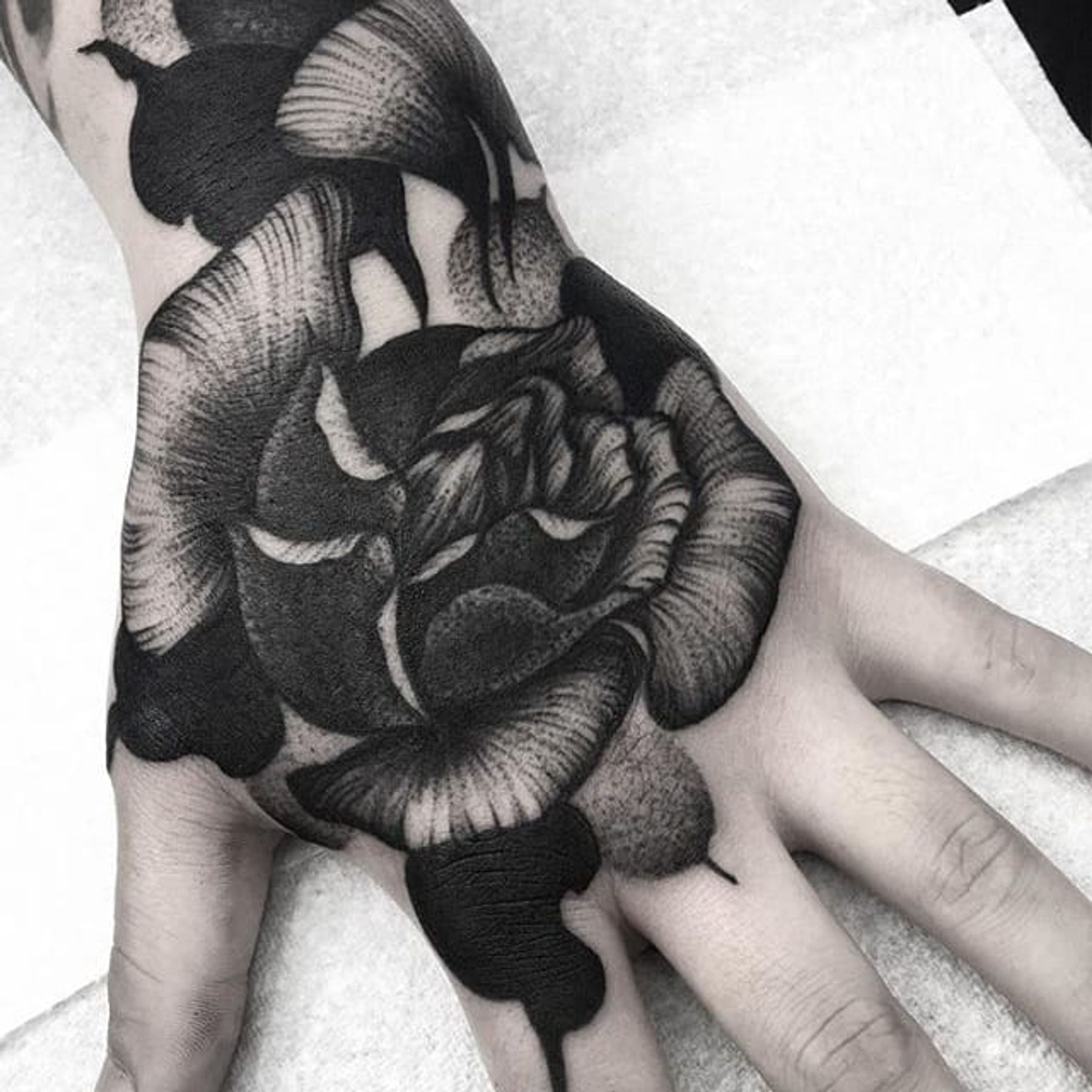 One of Kelly Violet's amazing black roses (IG—kellyviolence). #blacktattoo #blackwork #flowers #kellyviolet