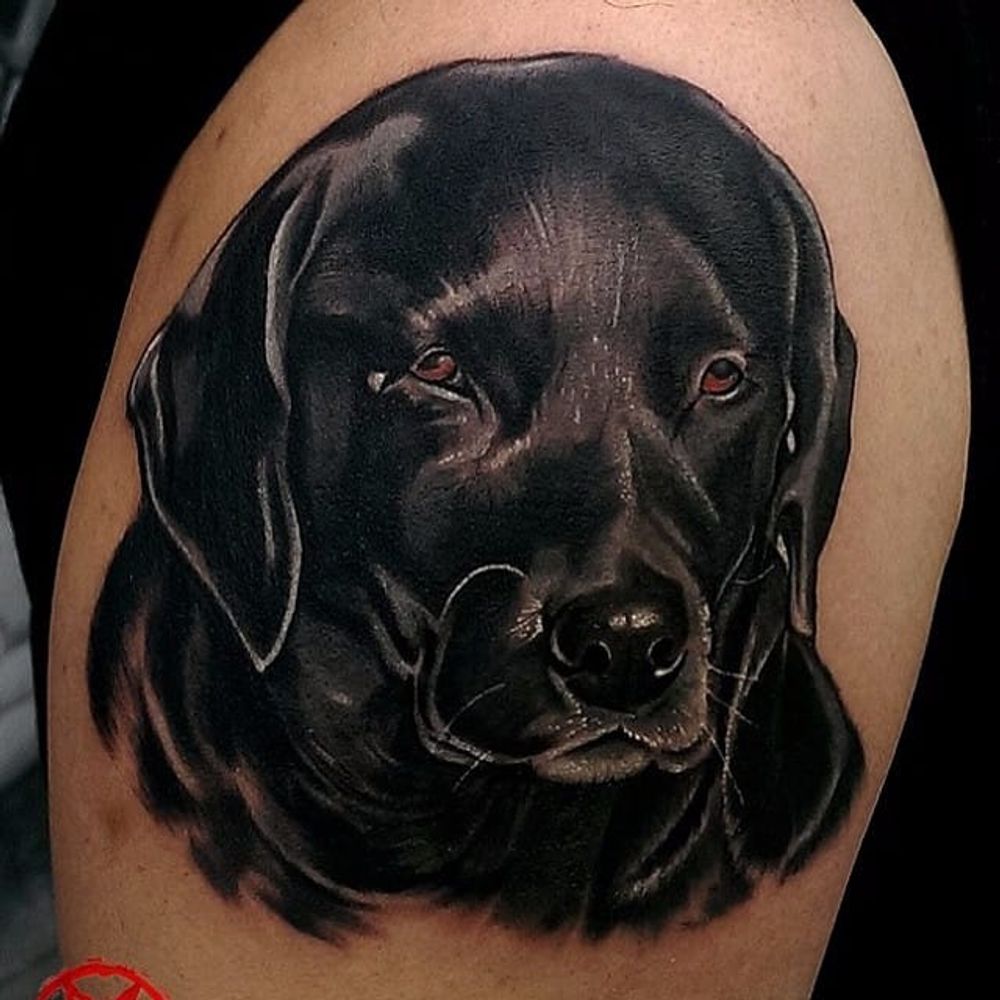 Black lab tattoo by Lokesh Verma. #dog #labrador #realism #styledrealism #LokeshVerm