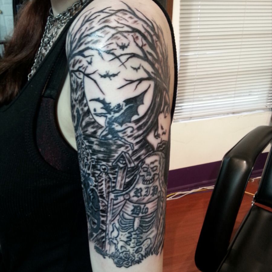 Cemetery scene tattoo by Al from Wild World Ink