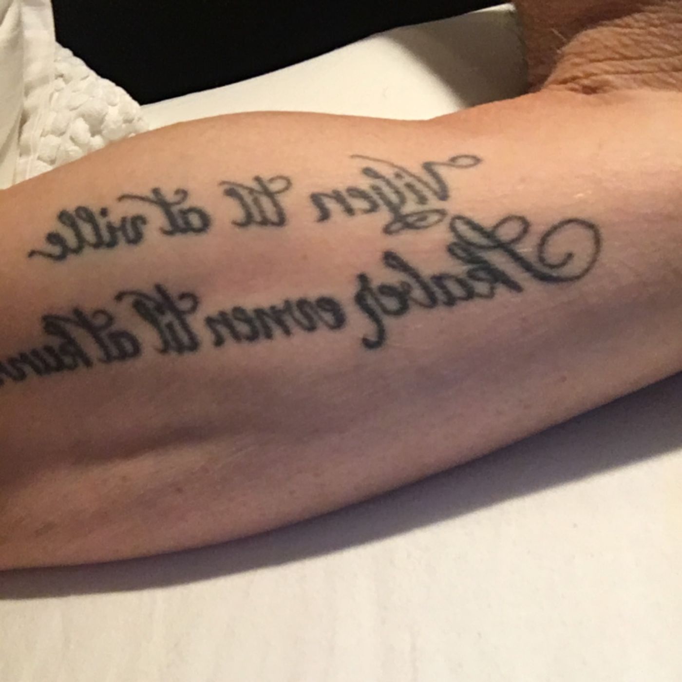 This is my first tattoo. A statement my grandfather used all his life.. it is in danish, translated to english is says : the will to really want it, create the ability to succeed.. RIP grandpa