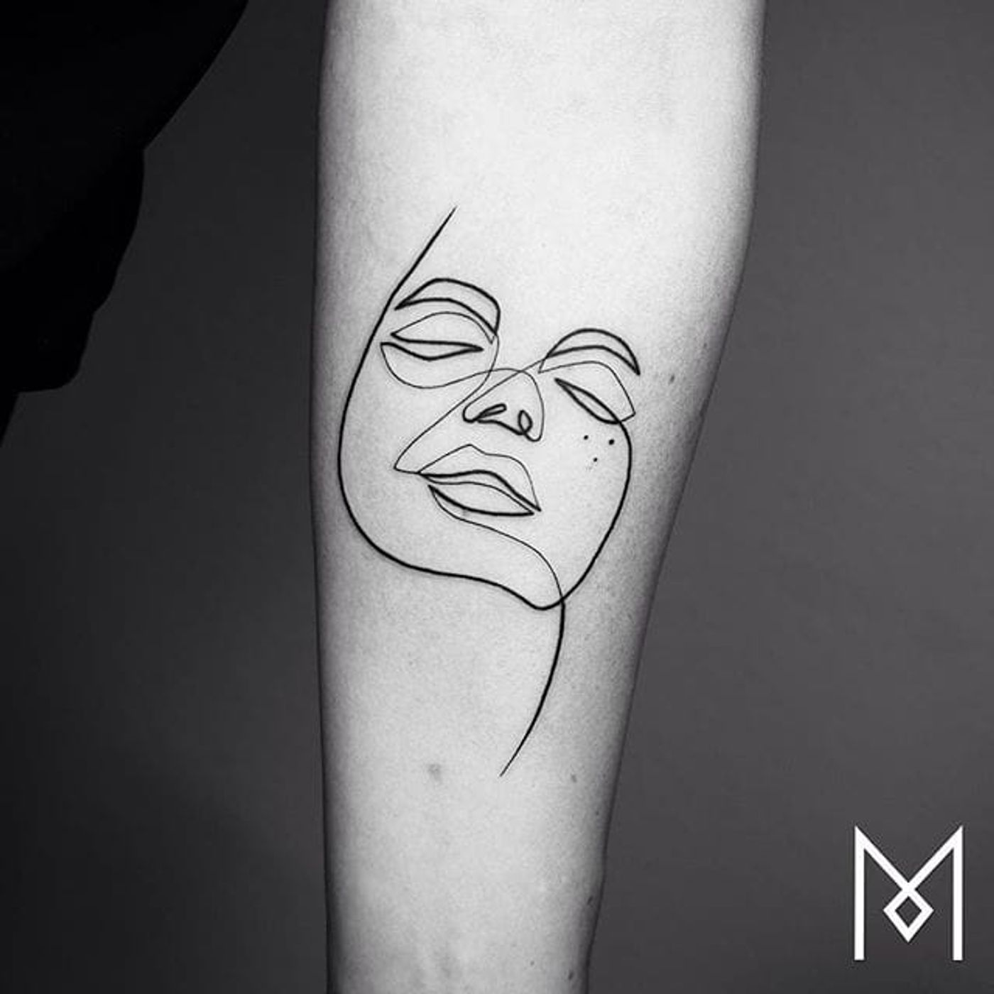 Single line portrait tattoo by Mo Ganji. #MoGanji #minimalist #singleline #continuousline #portrait #face