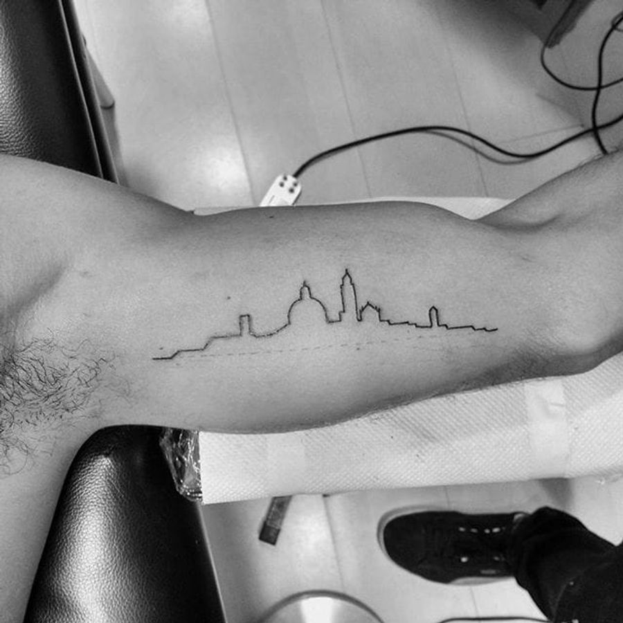 Pistoia skyline tattoo by Cristian Credi. #pistoia #tuscany #italy #skyscraper #landmark #skyline #silhouette #minimalist #subtle #simple #outline #microtattoo
