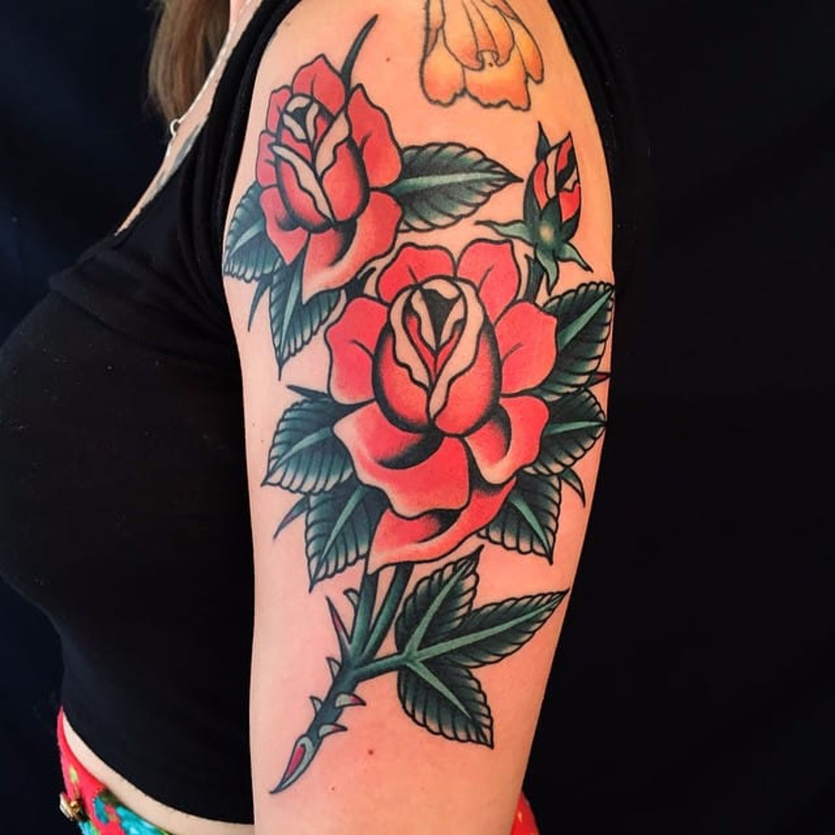 Upper arm flowers. (via IG - austinmaples) #traditional #flowers #flower #austinmaples