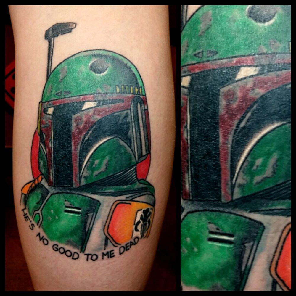 Boba Fett #inkfusion #inkfusionempire #geektattoo #geekedouttattoos #geeksterink #geekytattoos #comicbooktattoo #nerdytattoos #nerdtattoo #nerd #traditionaltattoo #realtattoos #realtraditional #tattoos #starwarstattoo #starwars #bobafetttattoo #bobafett #empirestrikesback