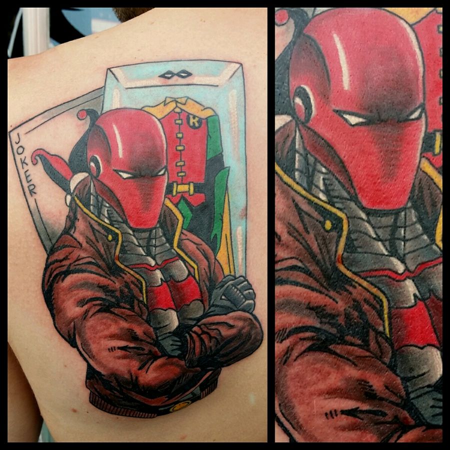 Redhood #inkfusion #inkfusionempire #geektattoo #geekedouttattoos #geeksterink #geekytattoos #comicbooktattoo #nerdytattoos #nerdtattoo #nerd #traditionaltattoo #realtattoos #realtraditional #tattoos #dccomicstattoo #dccomics #batman #batmantattoo #robin #robintattoo #redhood #redhoodtattoo