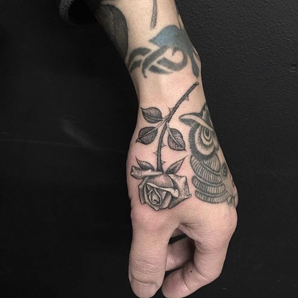 Rose Tattoo by Em Scott #rose #roses #blackandgreyrose #blackandgrey #blackandgray #fineline #finelinerose #EmScott