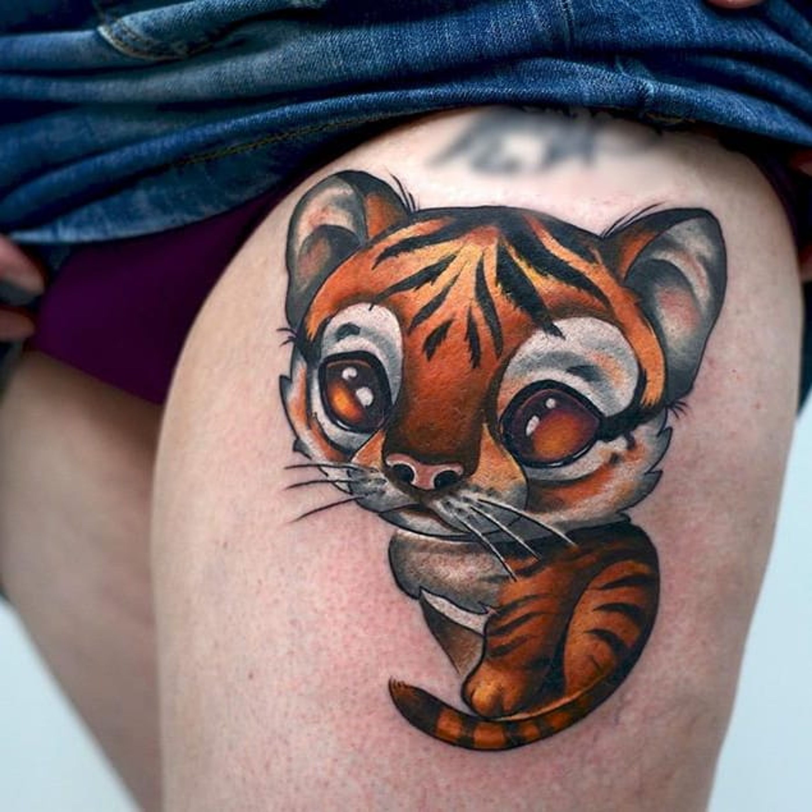 Baby tiger tattoo by Rude Eye #RudeEye #newschool #animal #cute #kawaii #babyanimal #babytiger #tiger