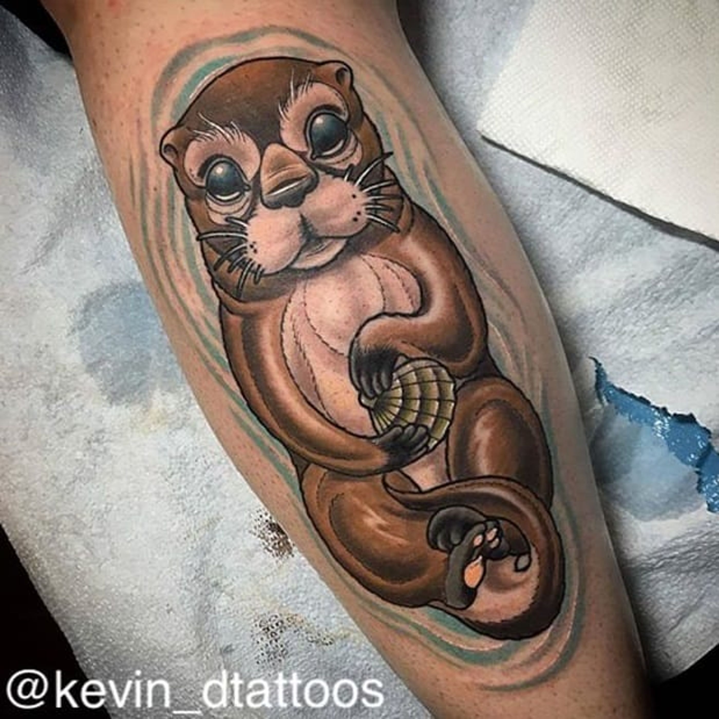Bright-eyed otter by Kevin Dixon. #neotraditional #otter #water #shell #KevinDixon