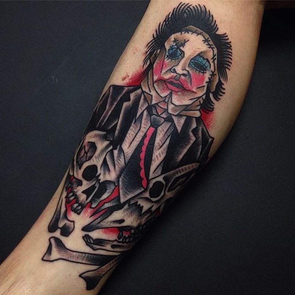 Leatherface Tattoo by Dan Gagné #leatherface #horror #horrorfilm #traditional #traditionalartist #traditionalhorror #DanGagne