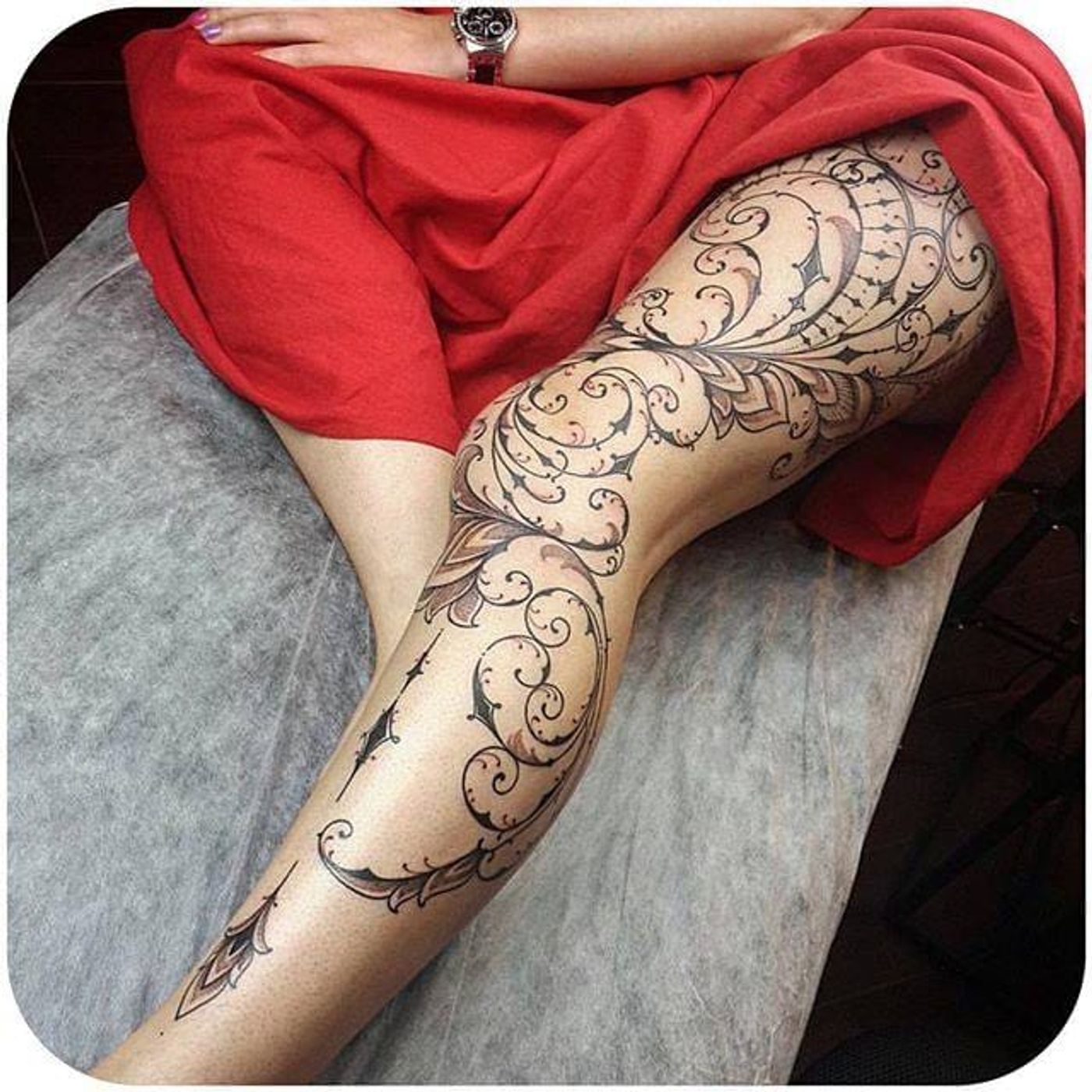 Beautiful decorative leg sleeve by @mangust_tattooer #legsleeve #decorative