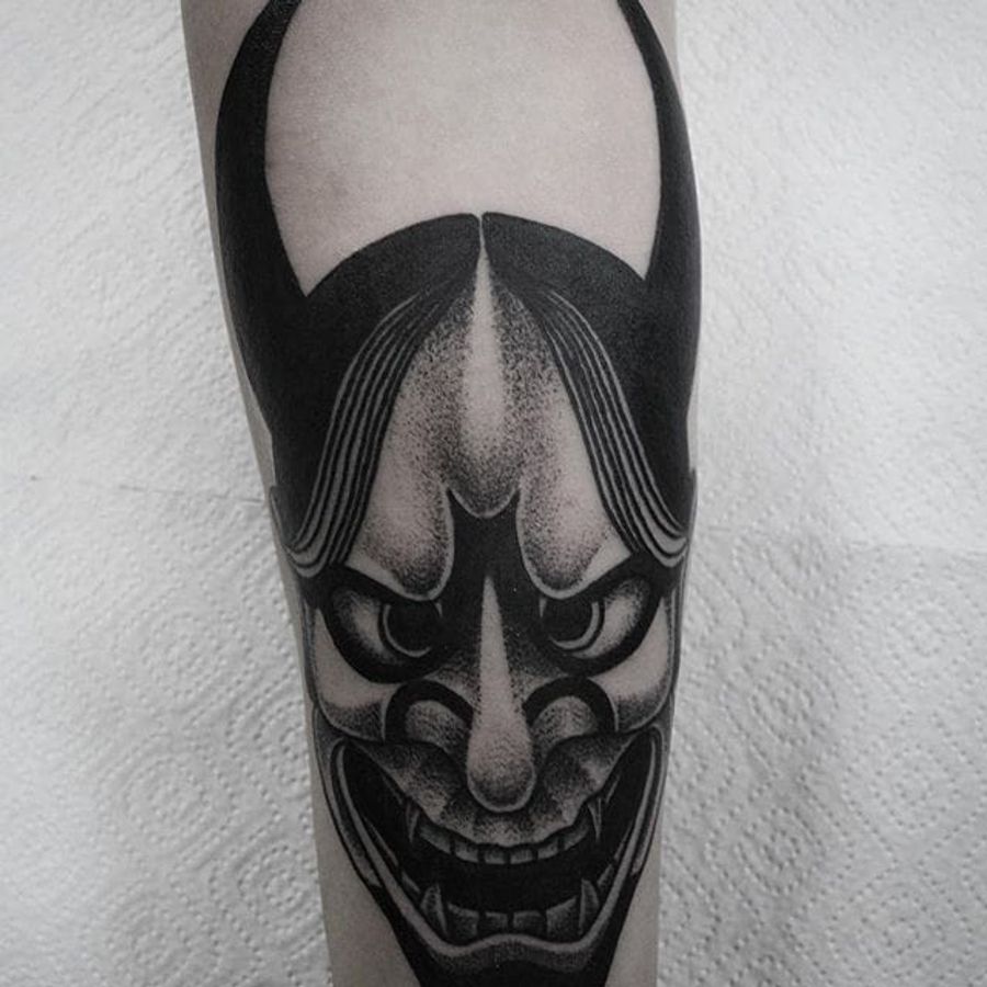 Hannya Tattoo by Vladimir Pride #hannya #hannyamask #dotwork #dotshading #blackwork #blackink #blackworkartist #darkart #blackworkartist #VladimirPride