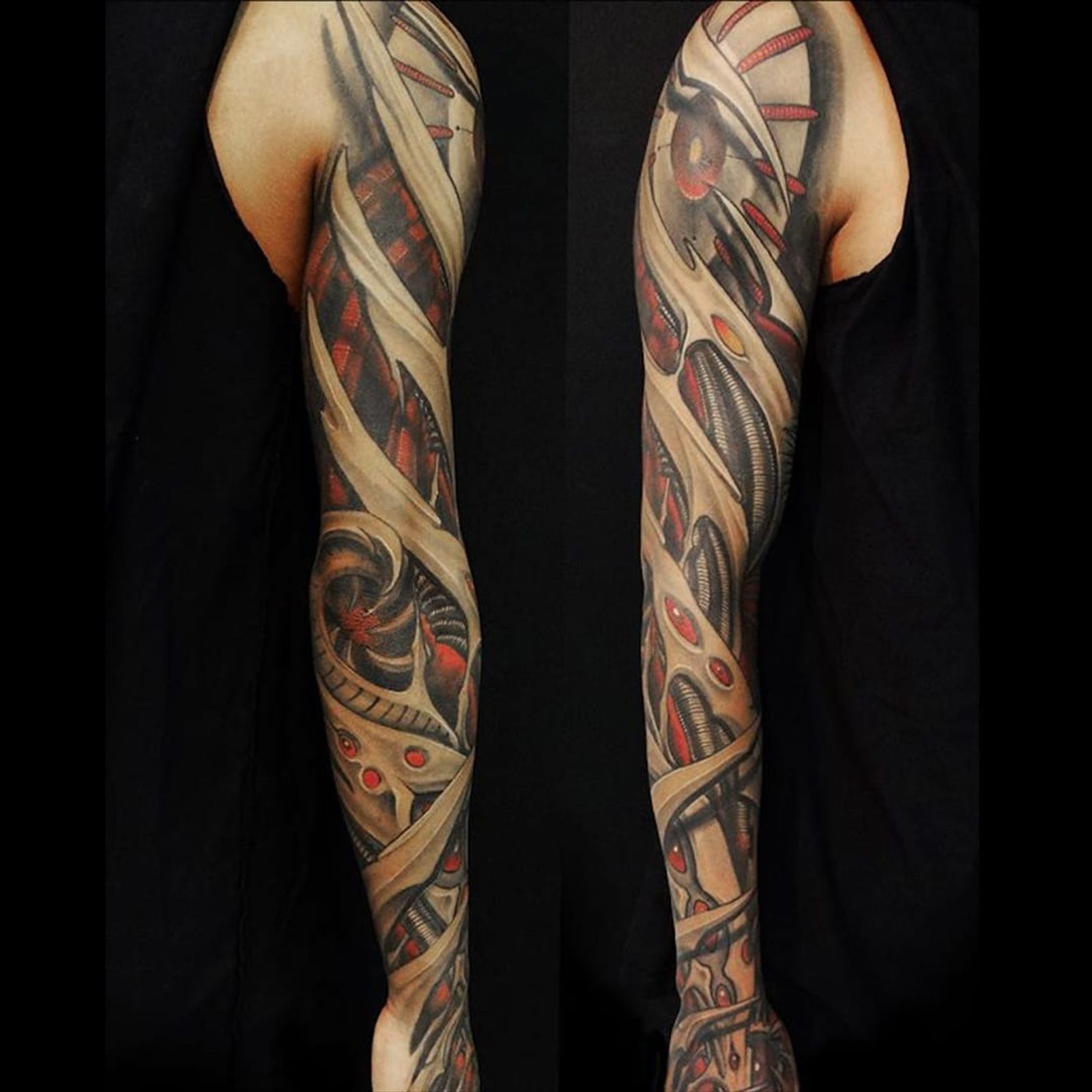 A bionic sleeve via Javier Obregon (IG—javiertattoo). #androids #biomechanical #cyborgs #JavierObregon #largescale #robots #sleeves