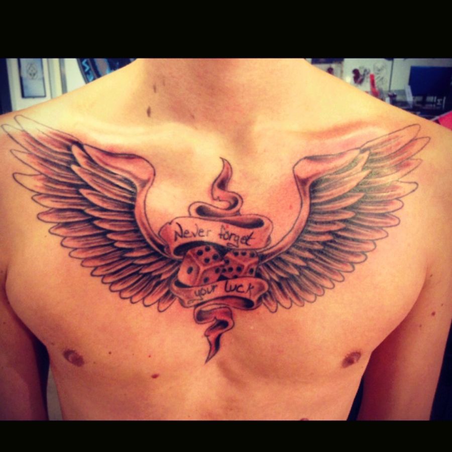 #new #tattoo #wings #dice #never #forget #your #luck #chest #finish