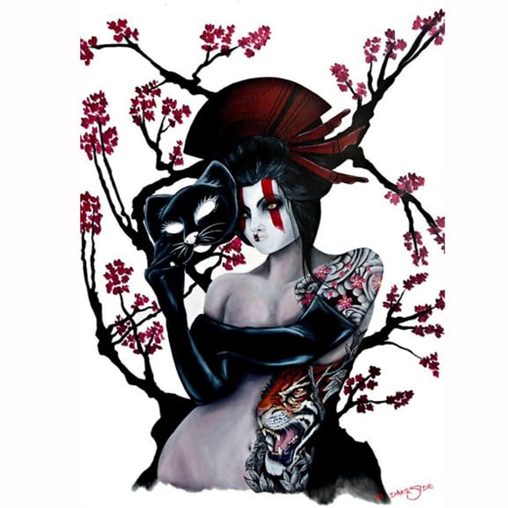 Love this tiger tattoo on the geisha. Painting by Martin Darkside. #MartinDarkside #prettypieceofflesh #darkart #tattoedartist #UKpainter #pinupgirls #horror #oilpainting #bradford #tiger #japanese