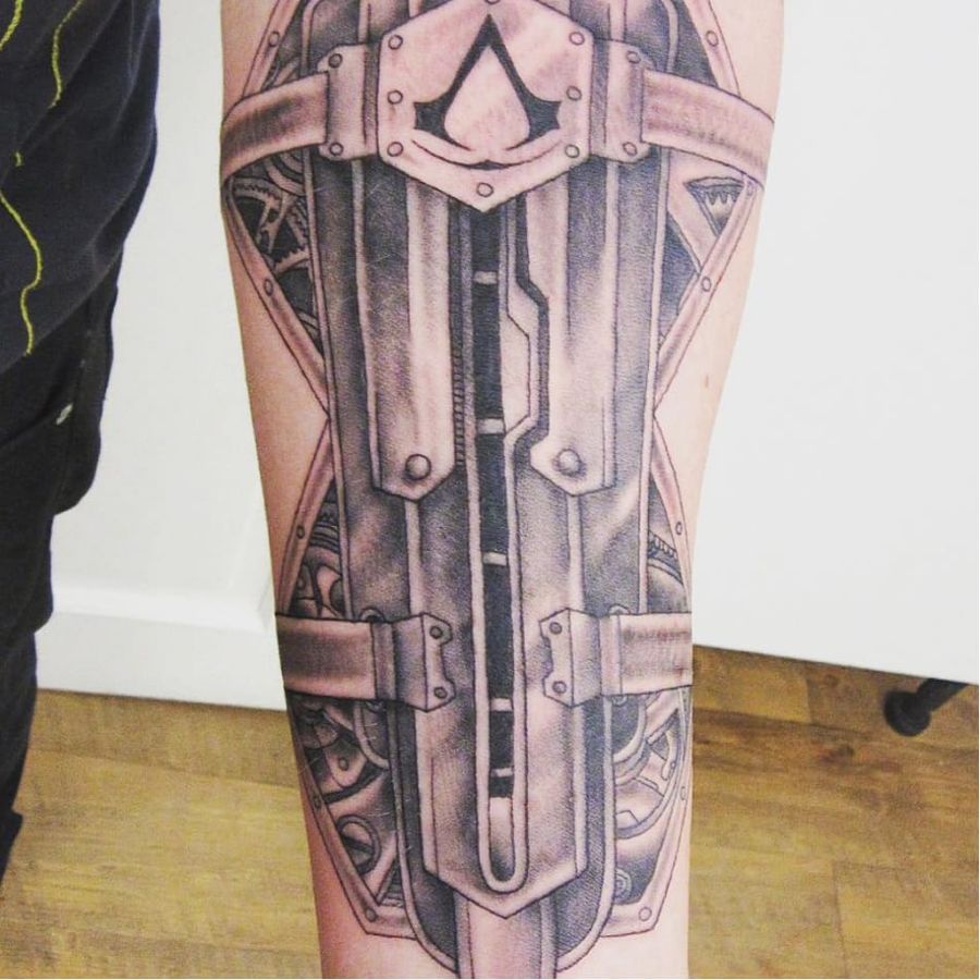 The hidden blade is increadibly deadly. (via IG - ironshoetattoo) #AssassinsCreed #AssassinsCreedTattoo #AssassinsCreedTattoos #HiddenBlade