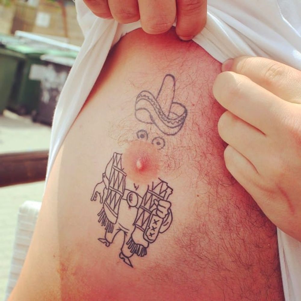 Ummmm. Photo from Magaluf Invasion #cowboy #regrets #sillytattoos #nipple