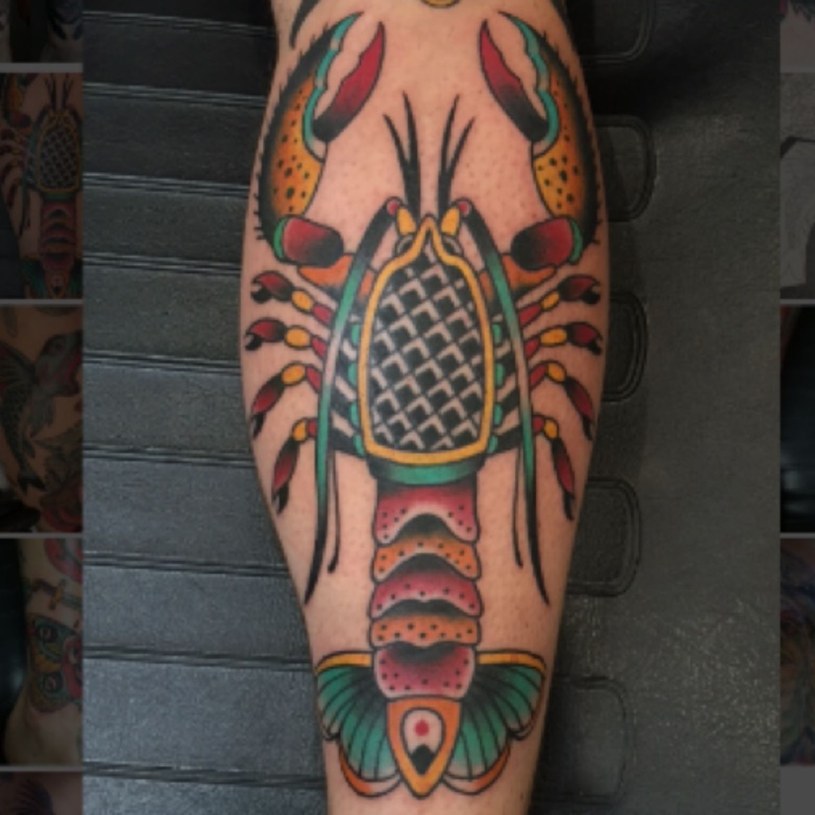 Lobster done by dave kruseman at olde line tattoo hagerstown maryland