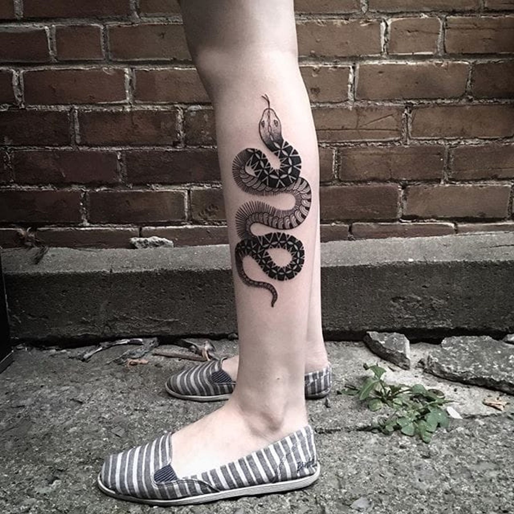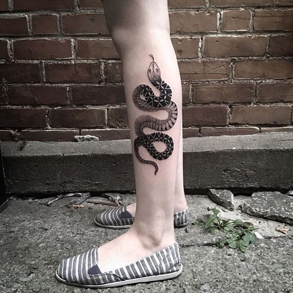 Snake winding up someone's leg, by Sylvie le Sylvie. (via IG—sylvielesylvie) #linework #blacktattoo #simple #SylvieleSylvie