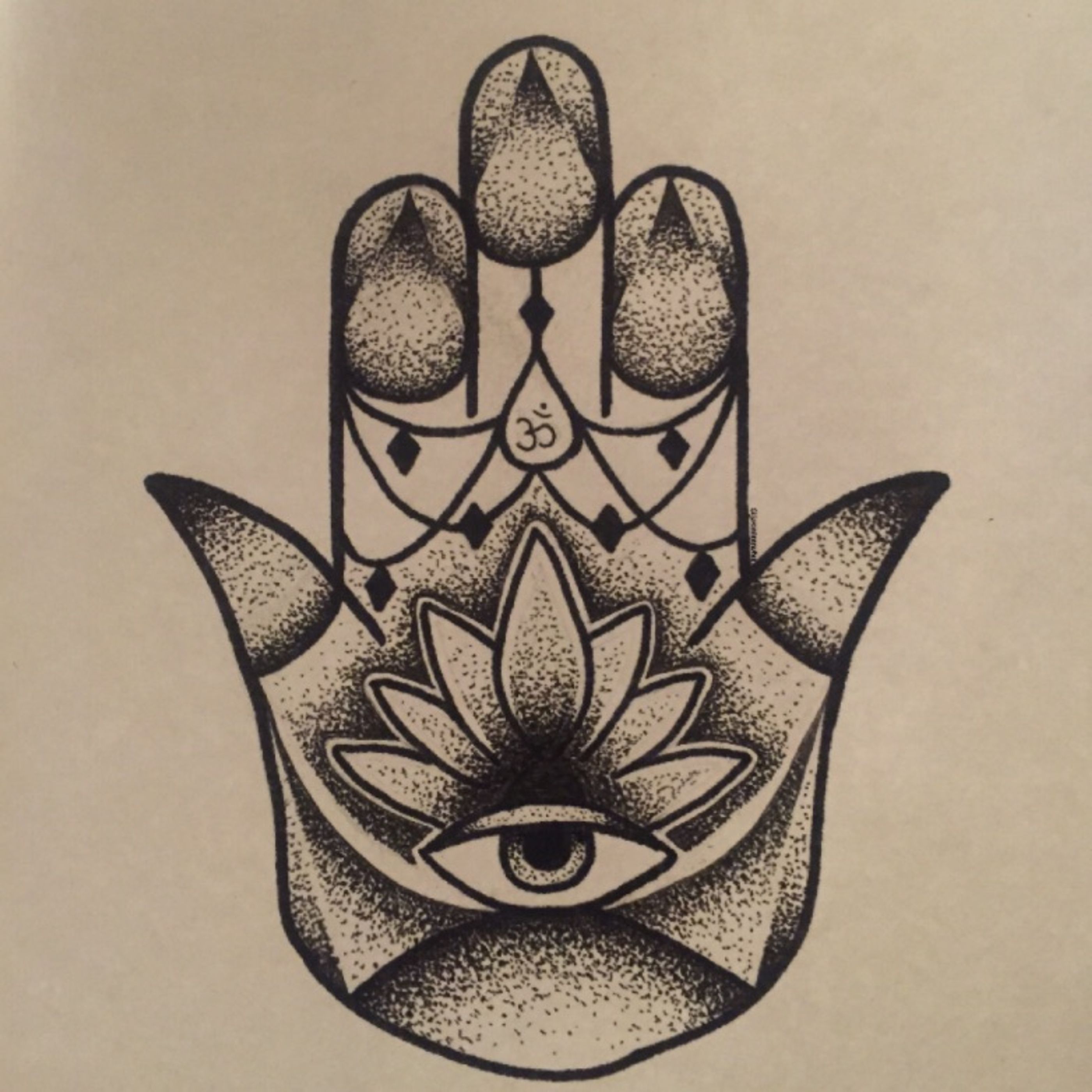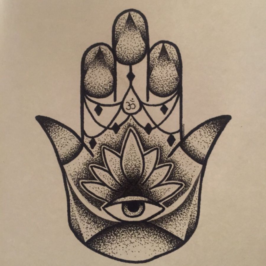 a design i did for a pal #hamsa #pointilism #dotwork #hamsahand #handofhamsa #om #lotus #allseeingeye #drawing #Black