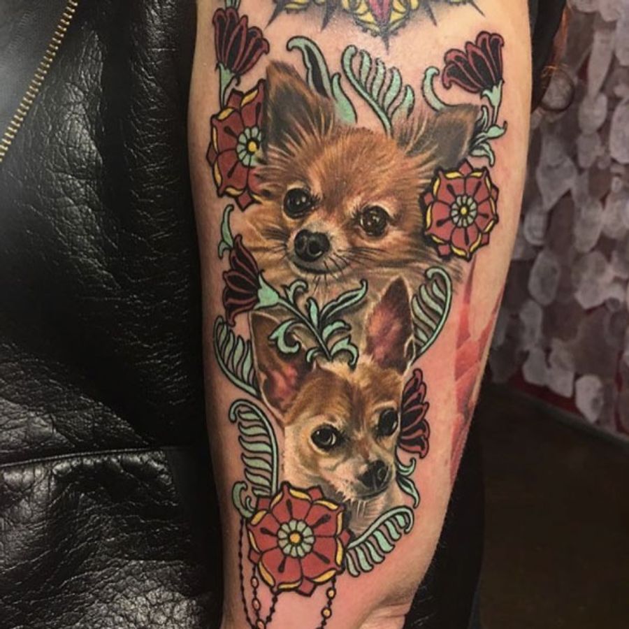 A super cute chihuahua tattoo made by @megan_massacre at Grit N Glory! For appointments email tattoo@meganmassacre.com