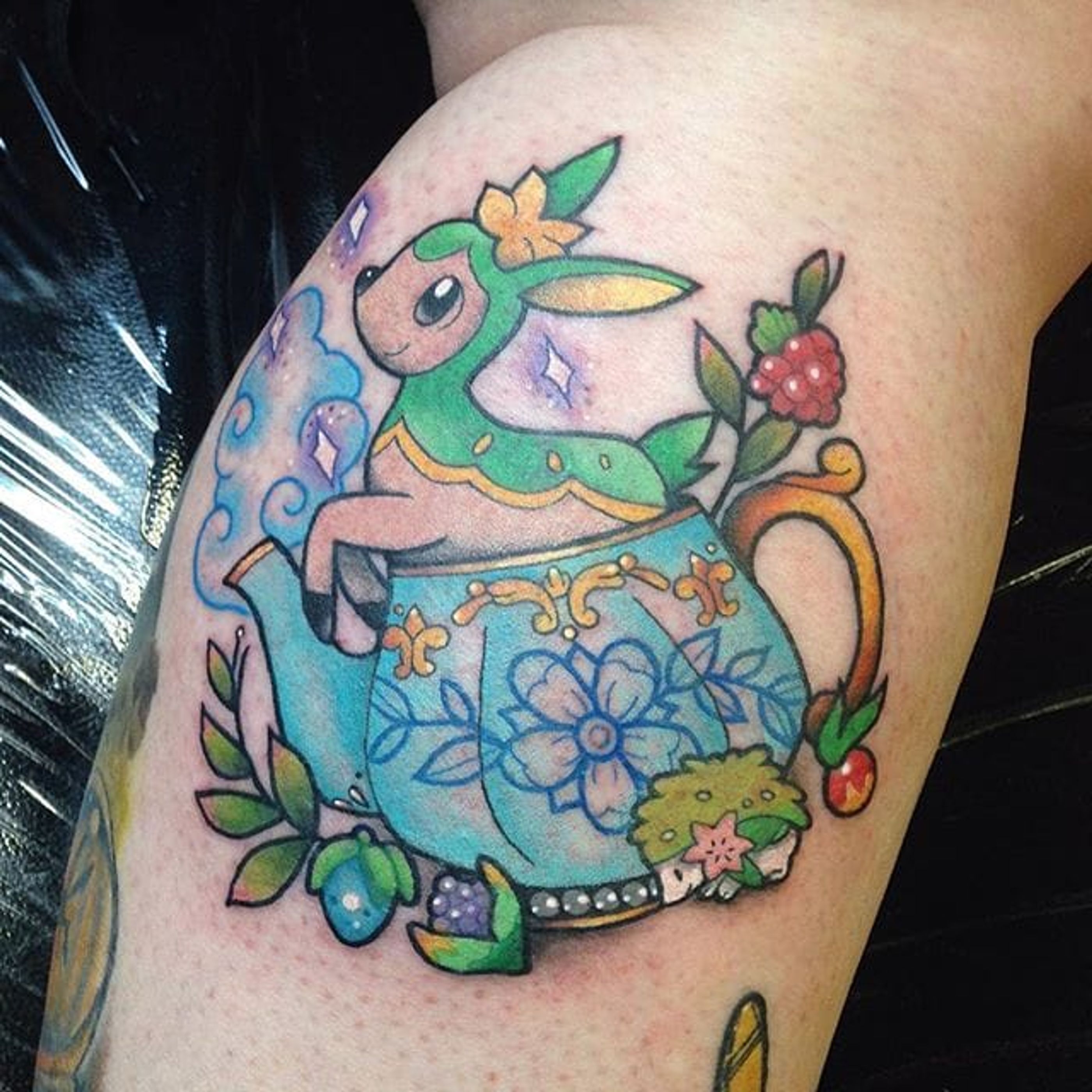 Little anime character in a teacup by Carly Kroll (via IG- @carlykroll) #carlykroll #neotraditional #cute #animal #teacup
