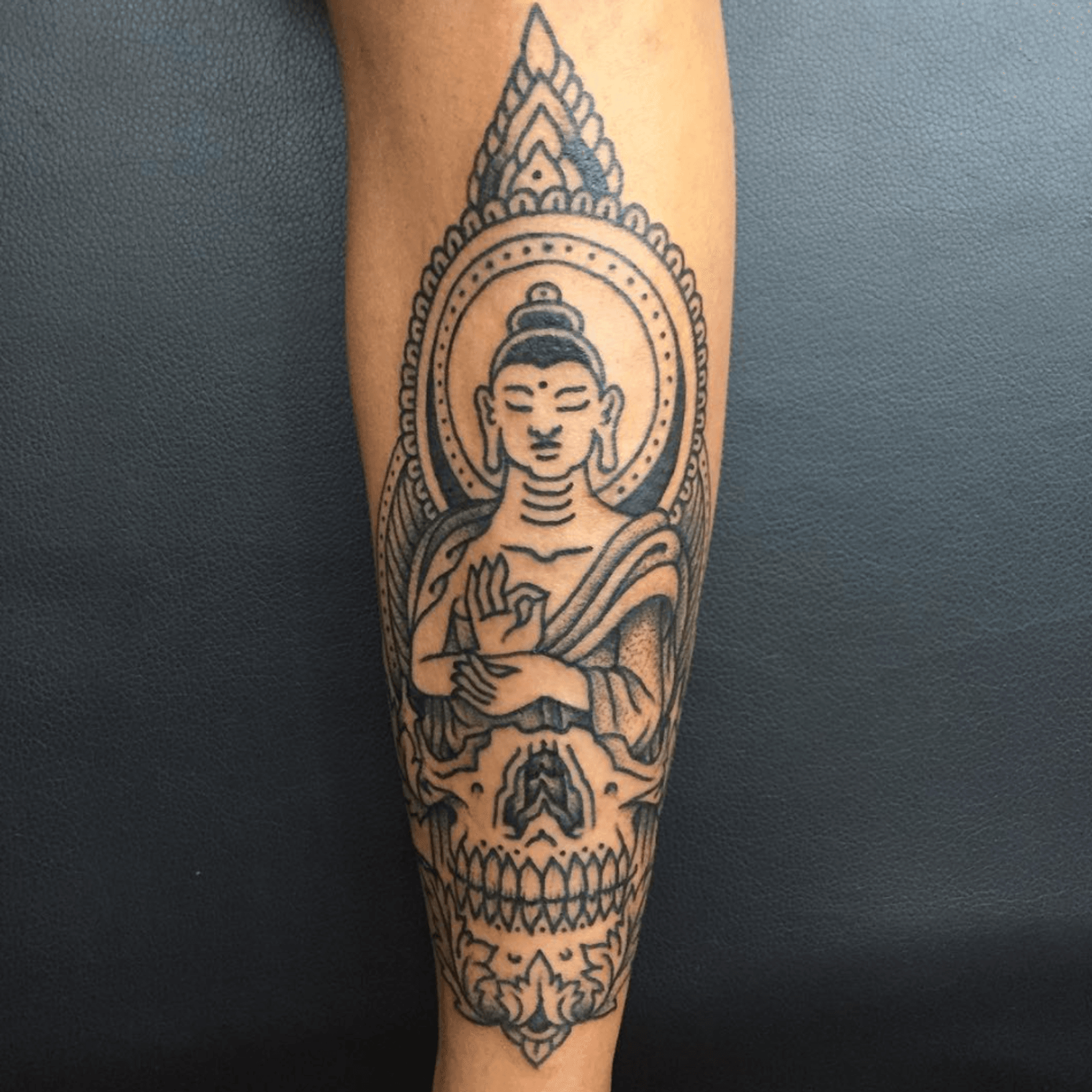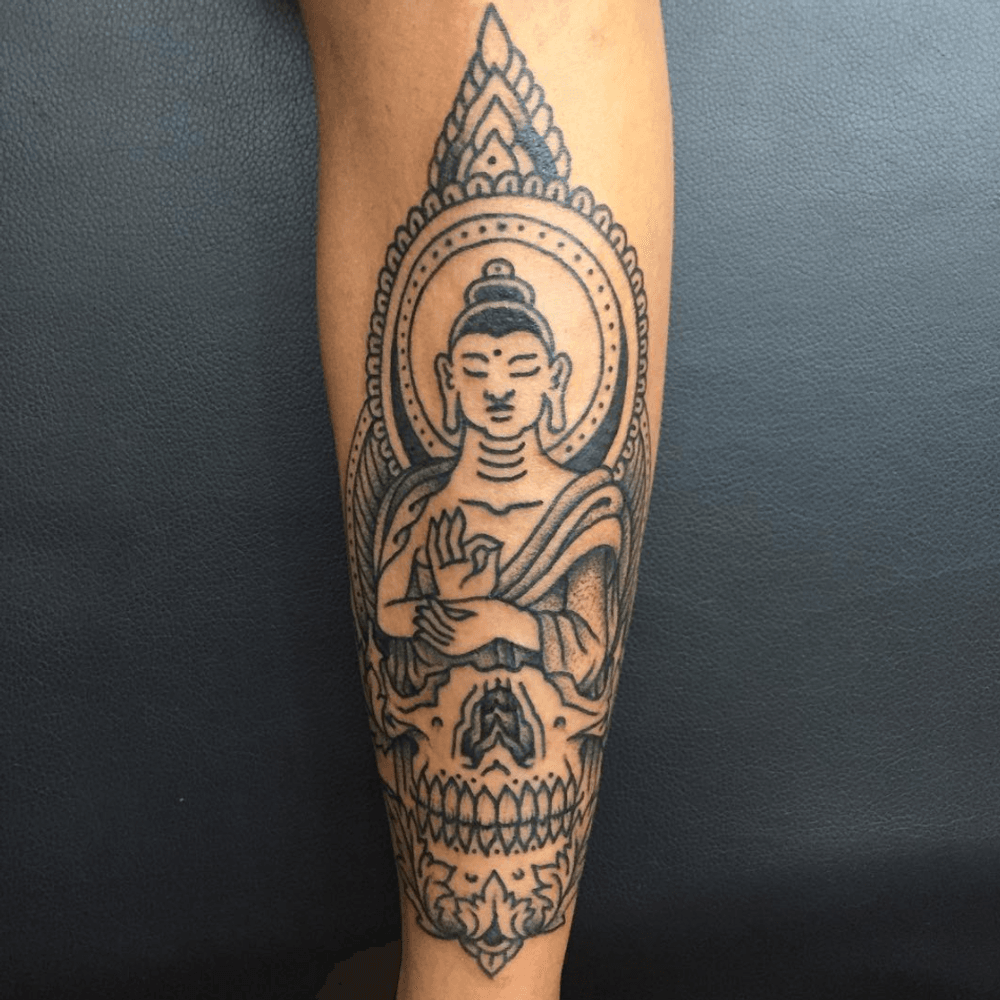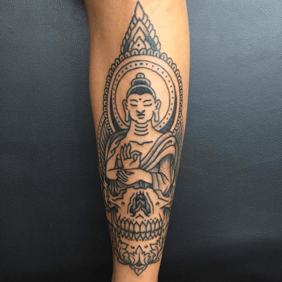 Tattoo by Kevin #tattoo #buddha #blackwork #skull #bedstuy #brooklyn #newyork #bigbangink