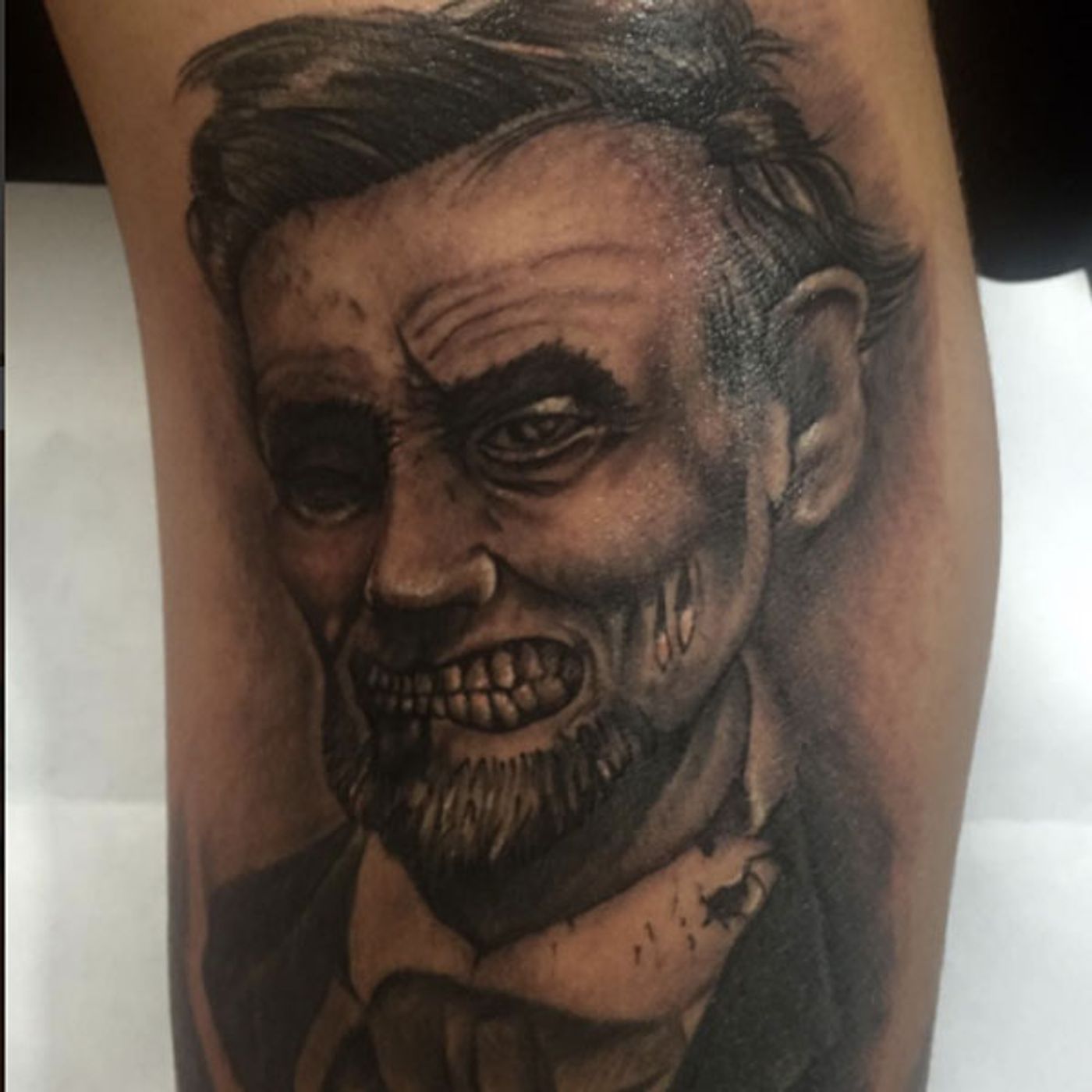 Abraham Lincoln tattoo by Mariano Gonzales #lincoln #abrahamlincoln #portrait #blackngrey #tattooartist #art #tattoostudio #brooklyn #ny #tattoosbyMariano